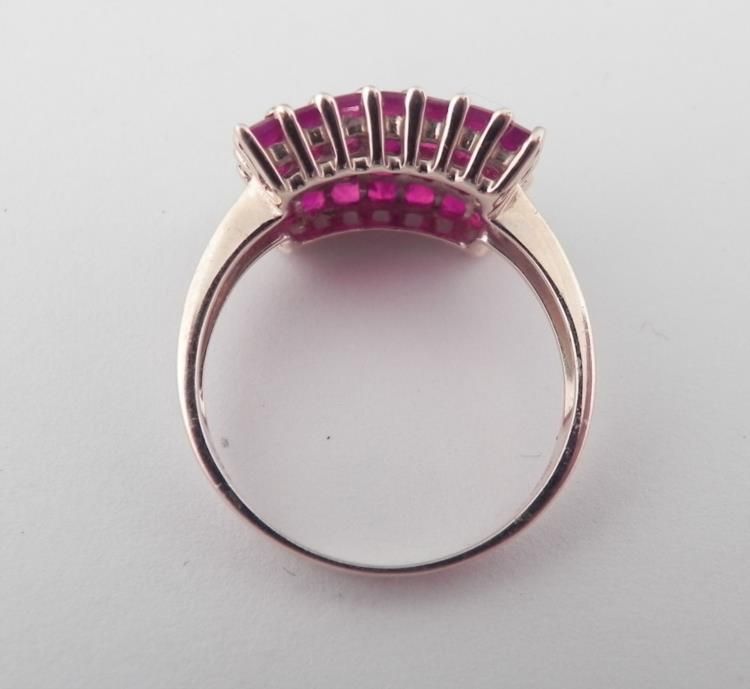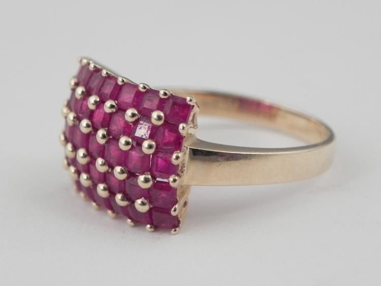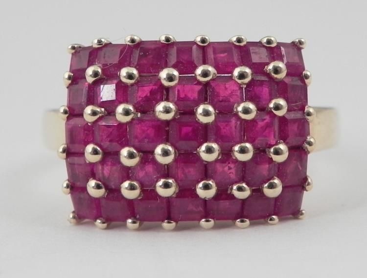 14K Yellow Gold Thai Ruby Ring with Rectangular stones in beaded setting * 3.16 GM BY 35 3.17 AP B247 RD 12 0.21 *