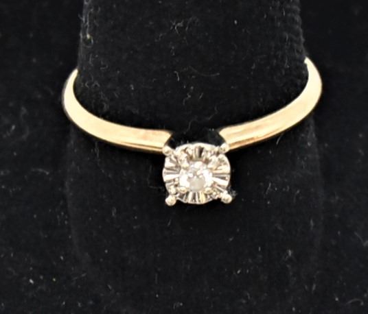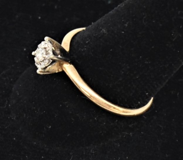 14K Yellow Gold and Diamond Engagement Ring, size 6.5, stamped 14K and hallmarked