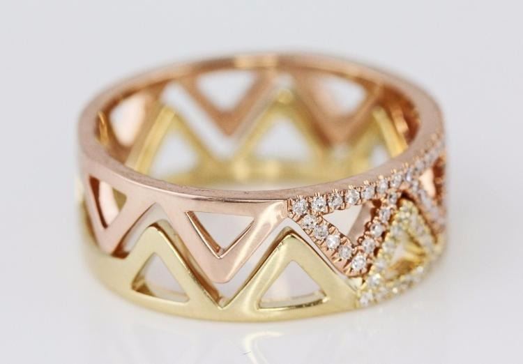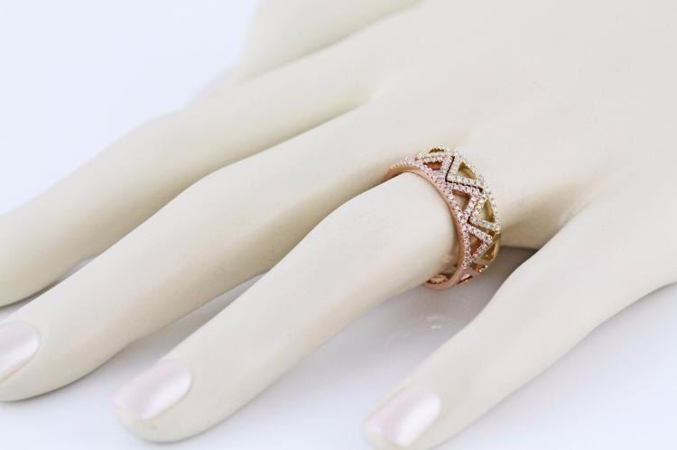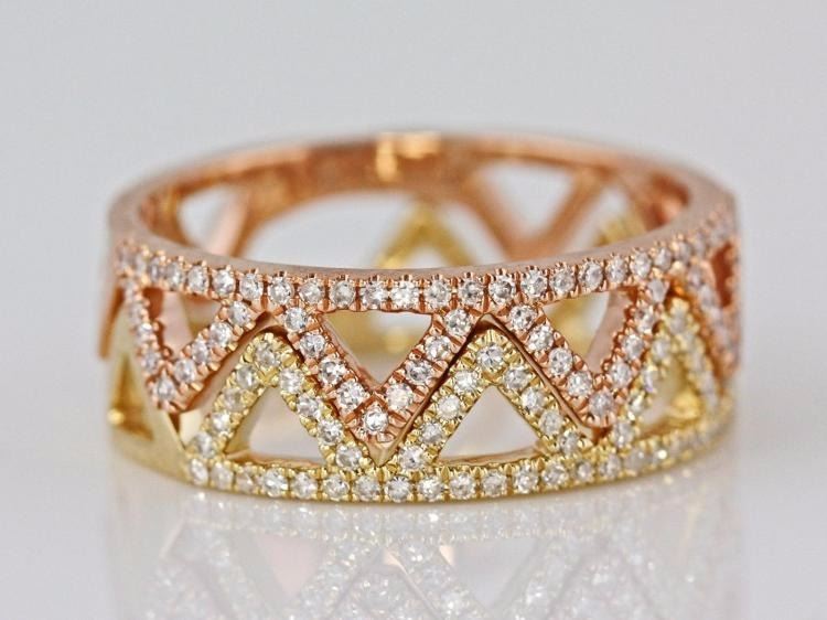 |**Total Carat Weight:0.4|**Clarity:SI2-SI3|**Cut:Verry Good|**Setting: Micro Pave Set |**Main Stone:|**MAIN Stone Treatment:Not Enhanced|**Main Stone Color:|**Main Stone Color:Round|**Theme:|**Length Inches:|**Ring Size:|**Style:Band|**Metal Purity:14k|**Metal:Rose Gold|**Gold Weight:5.16g|**Dimension:|**Diamond Color:G-H|**Sizable:|**Sizable:A brand-new, unused, and unworn item (including handmade items) in the original packaging (such as the original box or bag) and/or with the original tags attached|**Remarks: Colorless Diamonds, With no visible inclusions to the unaided eye. 0.40ct - 128pcs - 0.7mm - Clear Diamond (Not Enhanced) SETTING: Micro Pave Set PYRAMID HEIGHT: 5.5mm Approx. BAND WIDTH: 7.5mm Approx. (2 Rings Combined) WEIGHT OF GOLD: 5.16g 14K Solid Yellow & Rose Gold - ("14K-585" Metal Stamp)