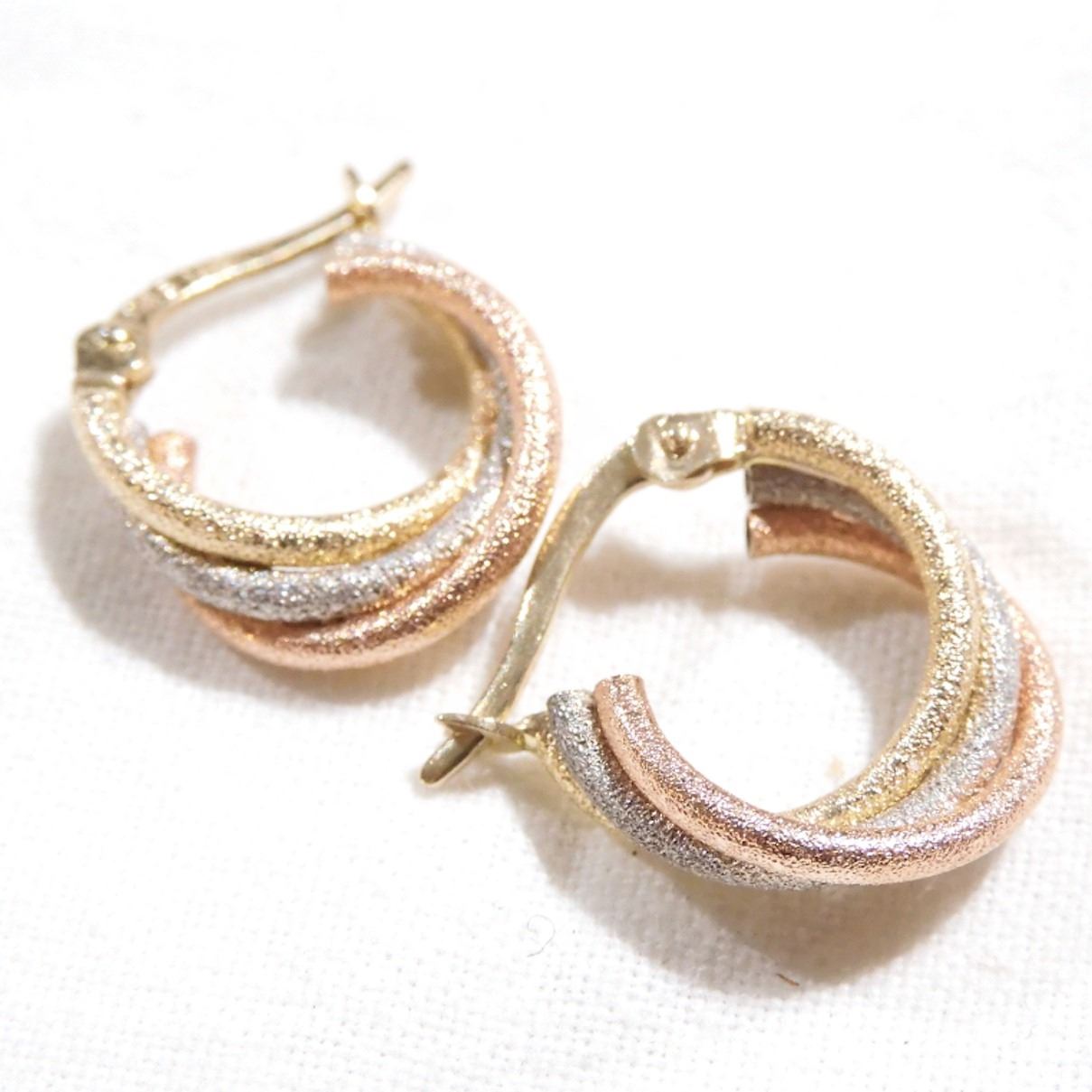 14K Yellow, White, and Rose Gold Hoop Style Earrings. Total weight of 1.8 grams.