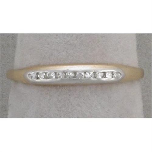 Darling 14K (unmarked but, tested) white and yellow gold band. Set with 10 single-cut diamonds estimated to weigh a total of .10carat. It is a size 7 1/2 and weighs 1.3 grams.