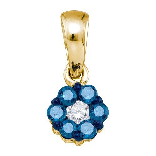 14K Yellow-gold 0.25CT BLUE DIAMOND FLOWER PENDANT **|**|** JSC Source: 79100 ; Metal: Gold ; Metal Purity: 14KT ; Ring Size: ; Main Stone: I1-I2 ; Total Carat: 0.25 ; Main Stone Color: H-I Color ; All diamonds are natural but colored diamonds are enhanced.Shipping cost: Below $200 = $19.99, $201-$500 = $29.99, $501-$1000 = $39.99, $1001-$2000 = $49.99
