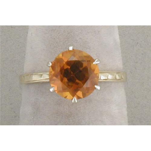 Beautifully engraved 14K gold (marked) ring set with a beautiful 7MM citrine. It is a size 5 1/2 and weighs 2.1 grams