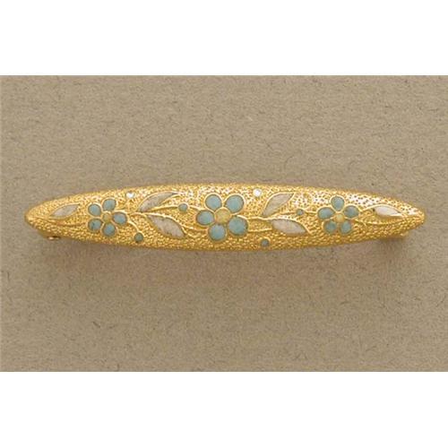 Dainty 14K gold pin accented with blue and white enamel (enamel is not perfect). The pin measures 4MM tall x 32MM wide and weighs 1.5 grams. $125.00