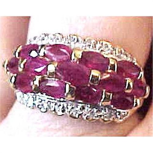 <tr><td>Title:14K yellow gold, diamond and ruby band</td></tr>