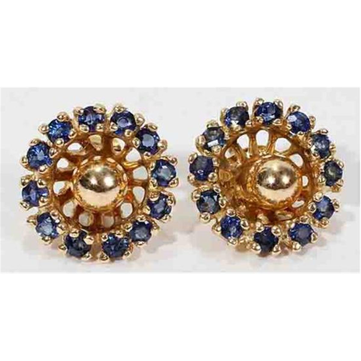14KT GOLD AND BLUE SAPPHIRE JACKETS:Earrings have .75ct sapphires. D 1/2in; 2 grams RP213