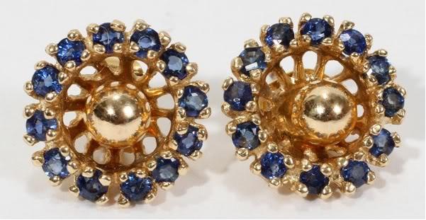 14KT GOLD AND BLUE SAPPHIRE JACKETS:Earrings have .75ct sapphires. D 1/2"; 2 grams