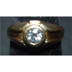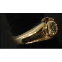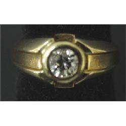 14KT YELLOW GOLD BEZEL SET DIAMOND RING. Contains approx. .45 ct. old cut round diamond. 9.1 grams wt. 8 finger size. CAGA appraisal.