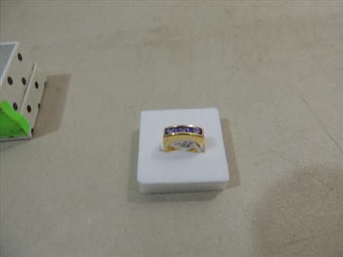 14KT GOLD EP AMETHYST CUBIC ZURCONIA STONE RING: SIZE 5. AS SHOWN. VIEW PICTURE FOR DETAIL.
