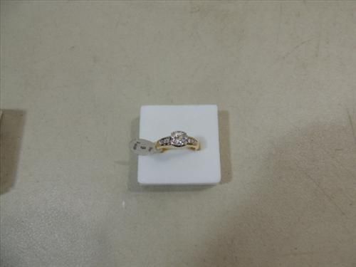 14KT GOLD EP DIAMOND CUBIC ZURCONIA LADYS RING. SIZE 9. AS SHOWN. VIEW PICTURE FOR DETAIL.