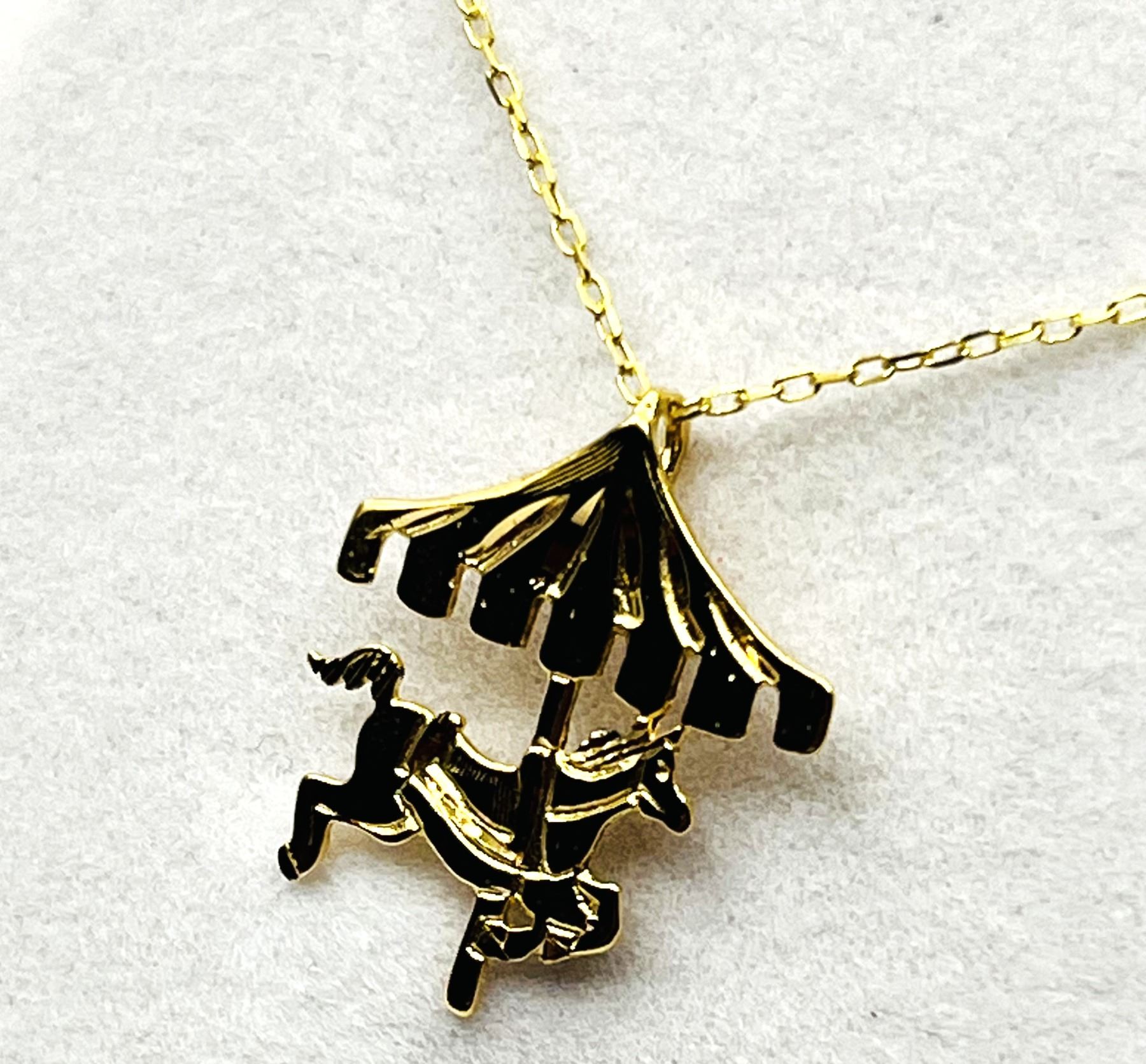 CAROUSEL PENDANT WITH GOLD PLATED STERLING SILVER CHAIN, RETAIL $300.00. **ALL ITEMS MUST BE REMOVED BY 5PM SATURDAY, NOVEMBER 29TH 2025. ALL REMAINING ITEMS WILL BE SUBJECT TO A $6.00 PER DAY STORAGE CHARGE. ANY ITEMS REMAINING AFTER MONDAY, DECEMBER 15TH 2025 WILL BE CONSIDERED FORFEITED. NO REFUNDS WILL BE ISSUED FOR FORFEITED ITEMS. TO SCHEDULE A PICK UP APPOINTMENT CLICK HERE