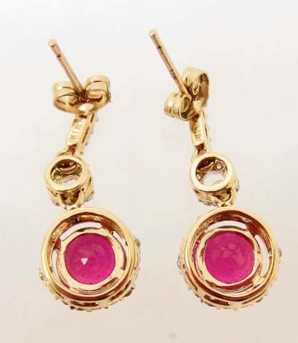 Two prong set round mixed cut natural Rubies 3.50 cts. 24 prong set round brilliant cut Diamonds 0.25 cts. Total Weight 4.10 grams. Appraised Value $2,240.00