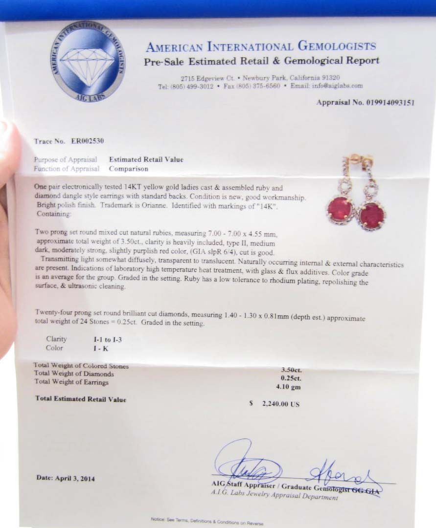 Appraisals We may sell items with Appraisals or Certificates of Authenticity. In these cases, buyer is responsible for verifying Value, Authenticity, etc… themselves by their own due diligence. Appraisals should be used for verification of gemstone and/or metal weight, size, and grade only, not actual value, as price varies greatly from retail locations. Items should not be purchased with the expectation to resell for appraisal price or for profit. Certificates of Authenticity are based on opinion. By bidding, you are bidding on THE ITEM ITSELF & not the Appraisal or COA that may accompany it.
