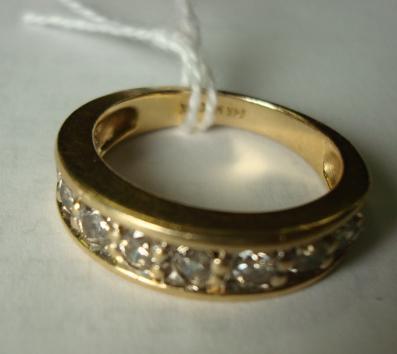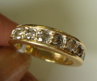 14KT Ladies Diamond Ring, Band Setting: Size 7 Yellow Gold Band with 10Prong Set Round Brilliant Diamonds. 4.4gr with Stones. Signed Mac K Inside. (200-400)