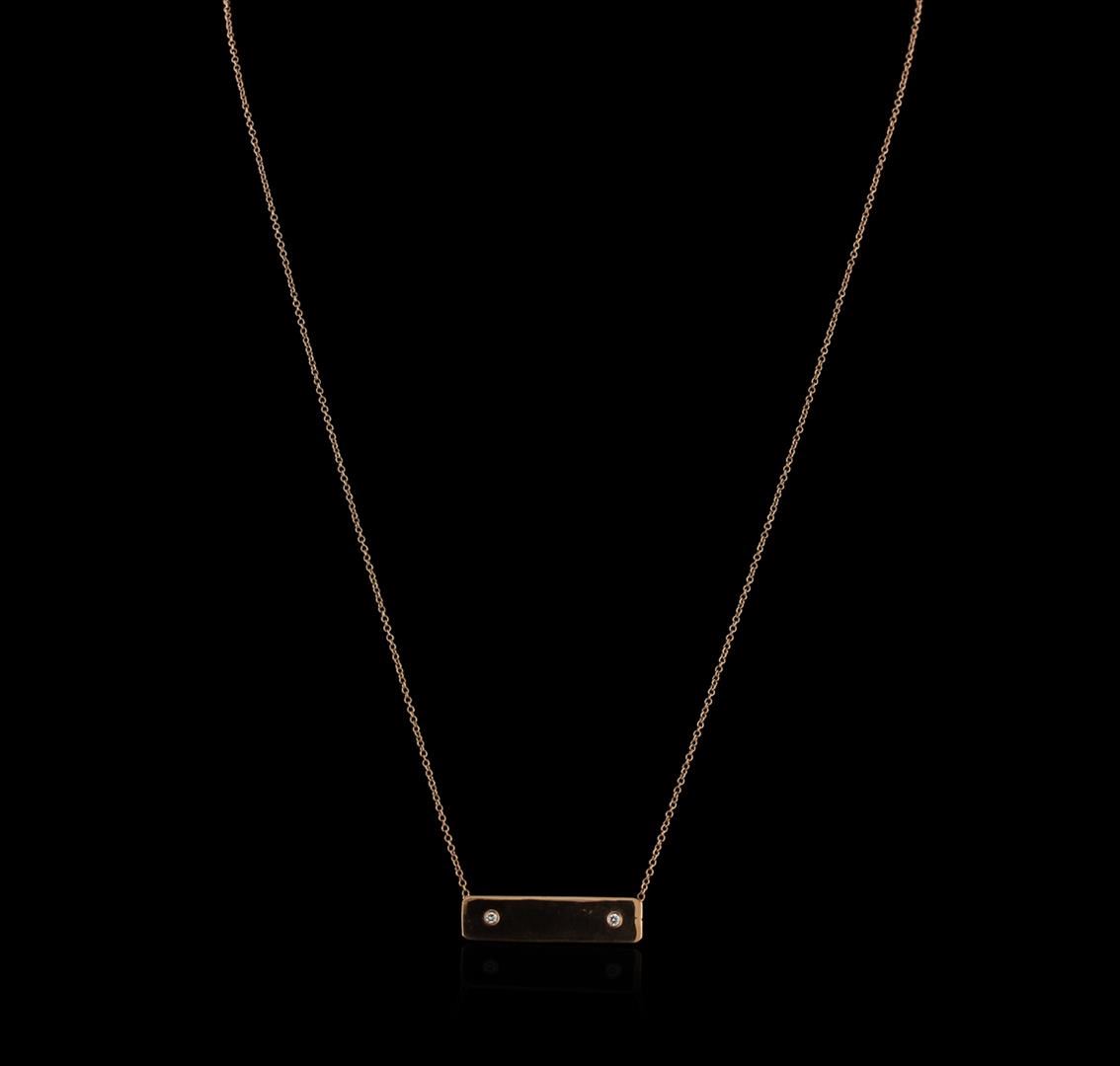 One plate pendant with chain featuring: 14KT rose gold weighing 2.64 grams containing diamonds with a total weight of 0.02ct.