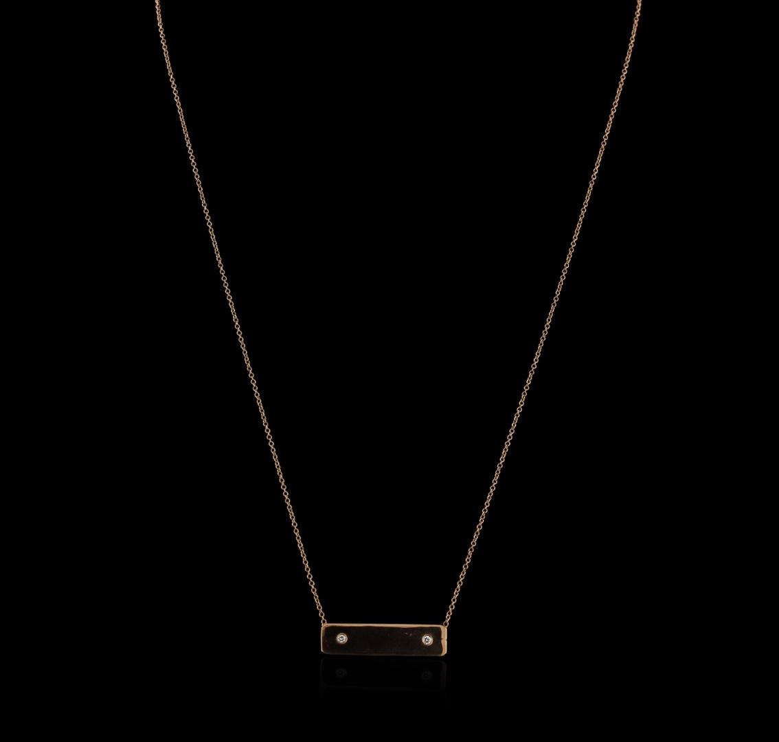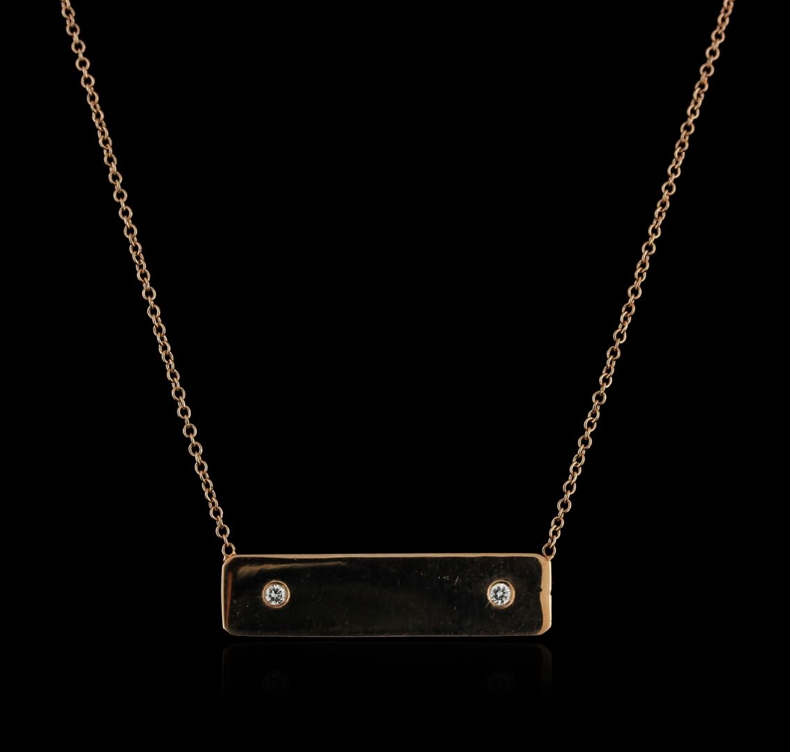 One plate pendant with chain featuring: 14KT rose gold weighing 2.64 grams containing diamonds with a total weight of 0.02ct.