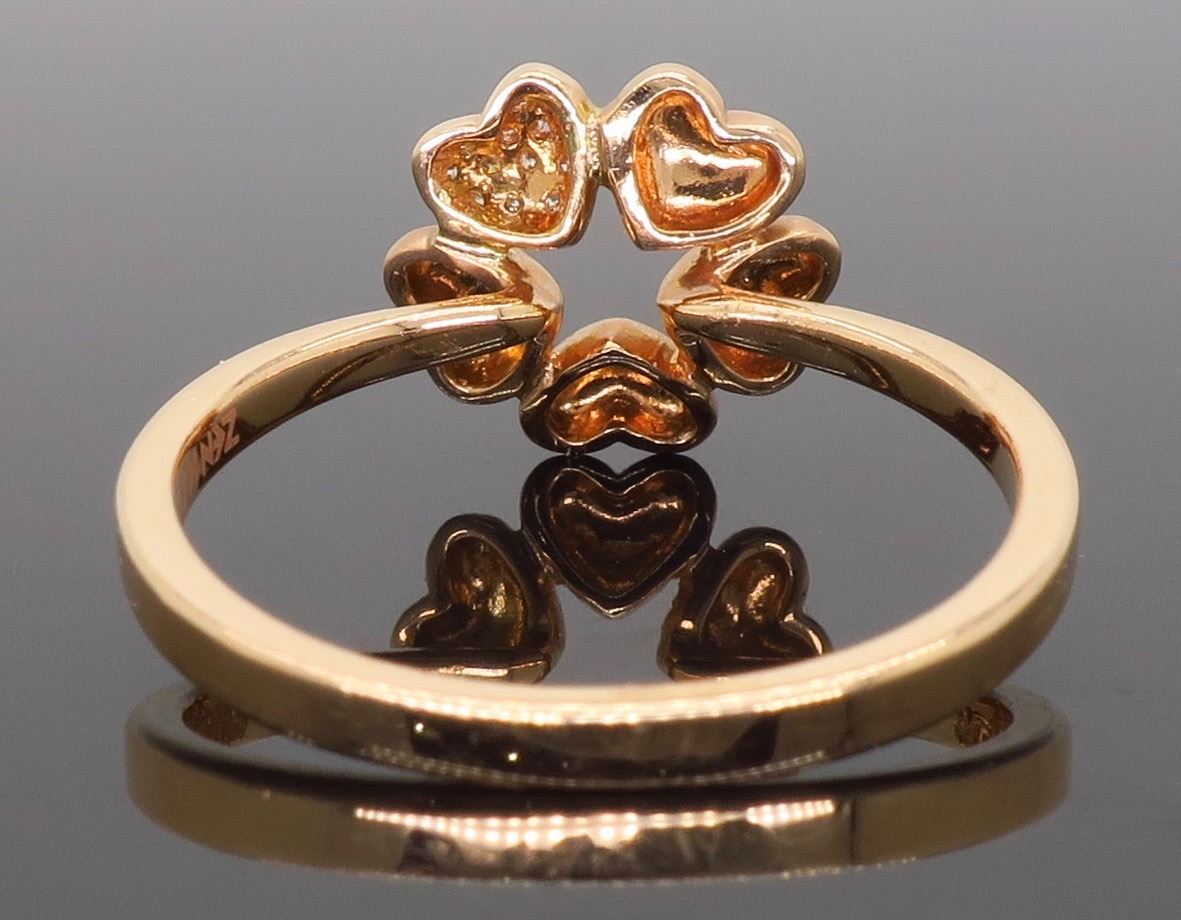 One 14KT Rose Gold 0.05ctw Diamond Ring. Round Diamonds with a total weight of 0.05cts with a color of G-I and clarity of SI-2 to I-1. Total weight of this ring is 2.4 grams. Ring size is 6.5.