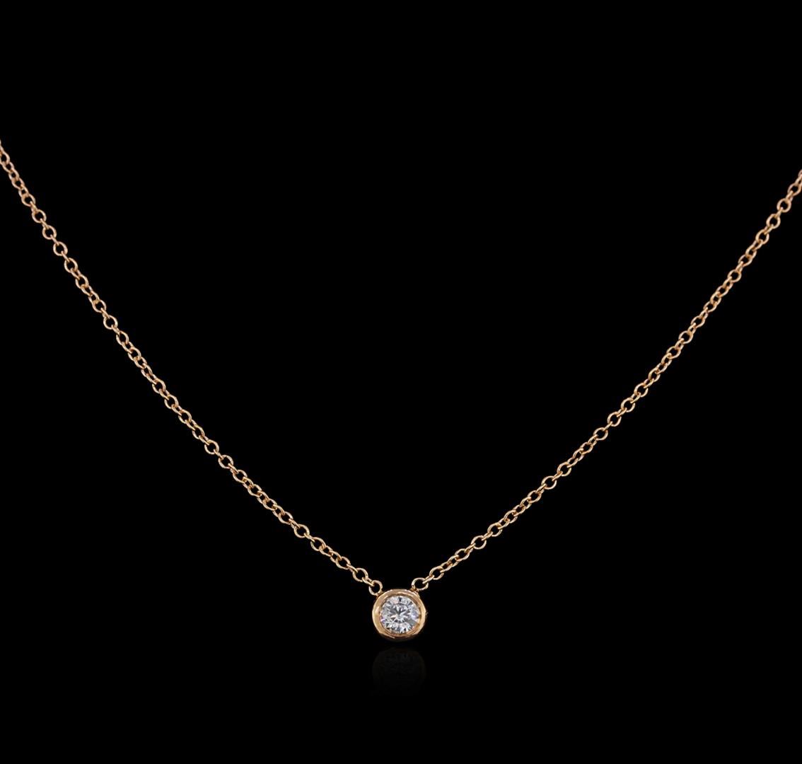 One solitaire necklace featuring: 14KT rose gold weighing 1.68 grams containing one diamond with a total weight of 0.09ct.