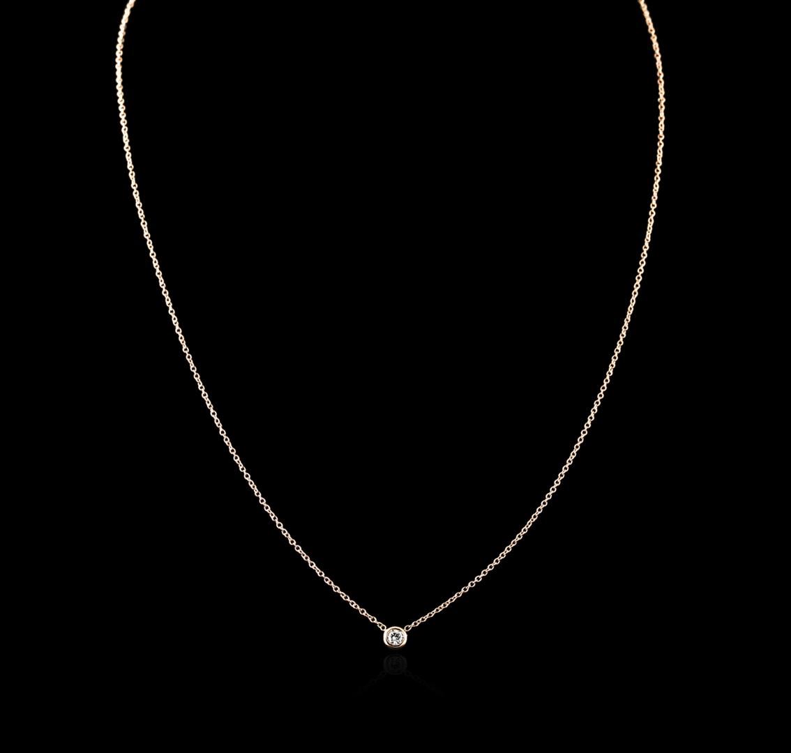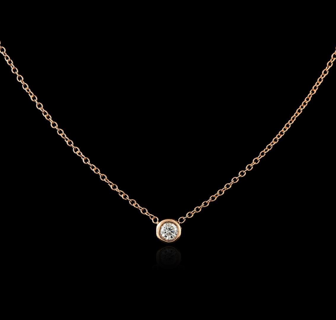 One solitaire necklace featuring: 14KT rose gold weighing 1.68 grams containing one diamond with a total weight of 0.09ct.