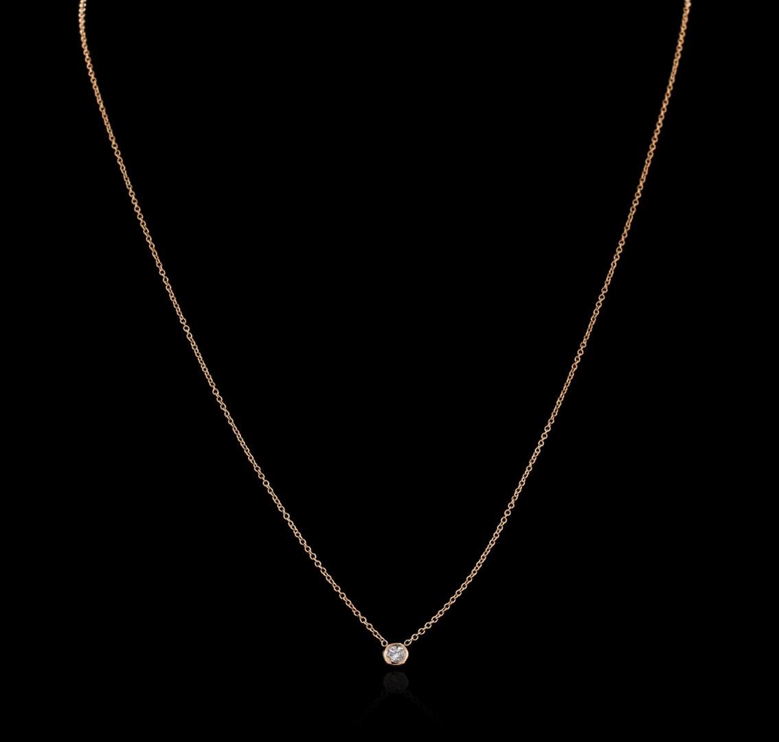 One solitaire necklace featuring: 14KT rose gold weighing 1.65 grams containing one diamond with a total weight of 0.09ct.