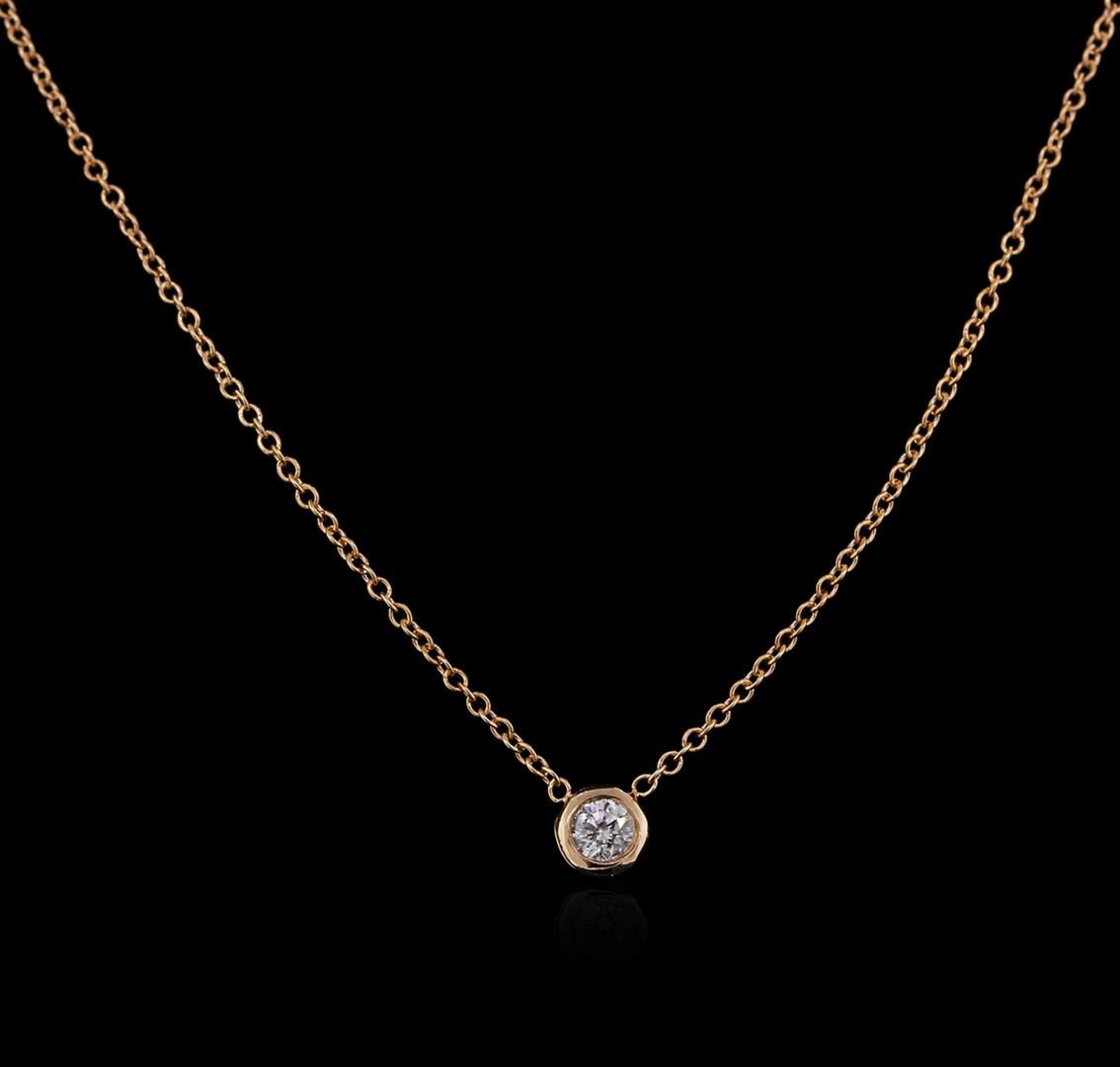 One solitaire necklace featuring: 14KT rose gold weighing 1.65 grams containing one diamond with a total weight of 0.09ct.