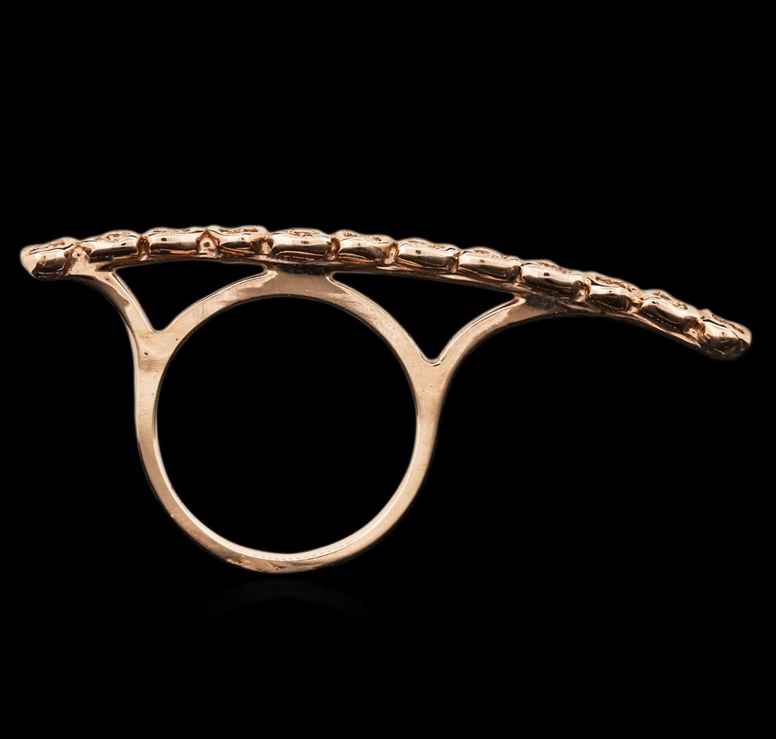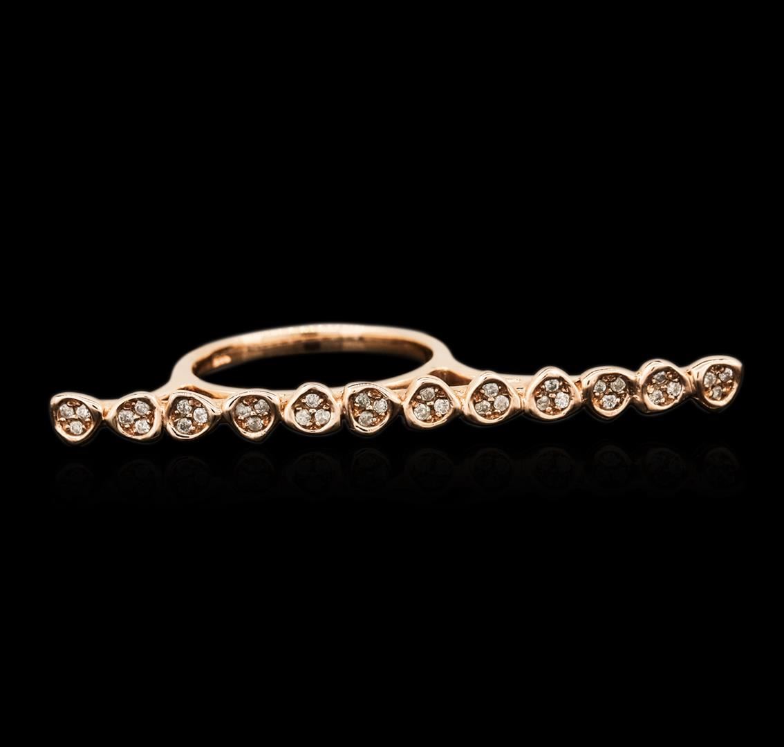 One electronically tested 14KT rose gold ladies cast diamond ring with a bright polish finish. Identified with markings of "585". Condition is new. Containing: Thirty-Six bead set round brilliant cut diamonds, measuring 1.00 - 1.00 x 0.60mm (depth est.) approximate total weight of 36 Stones = 0.13ct. Clarity: I-1 to I-2. Color: I - J. All diamonds are graded in the mounting, unless otherwise stated. Total Weight of Diamonds 0.13ct. Total Weight of Ring 5.00 grams. GGL Appraised at $2,125.00.