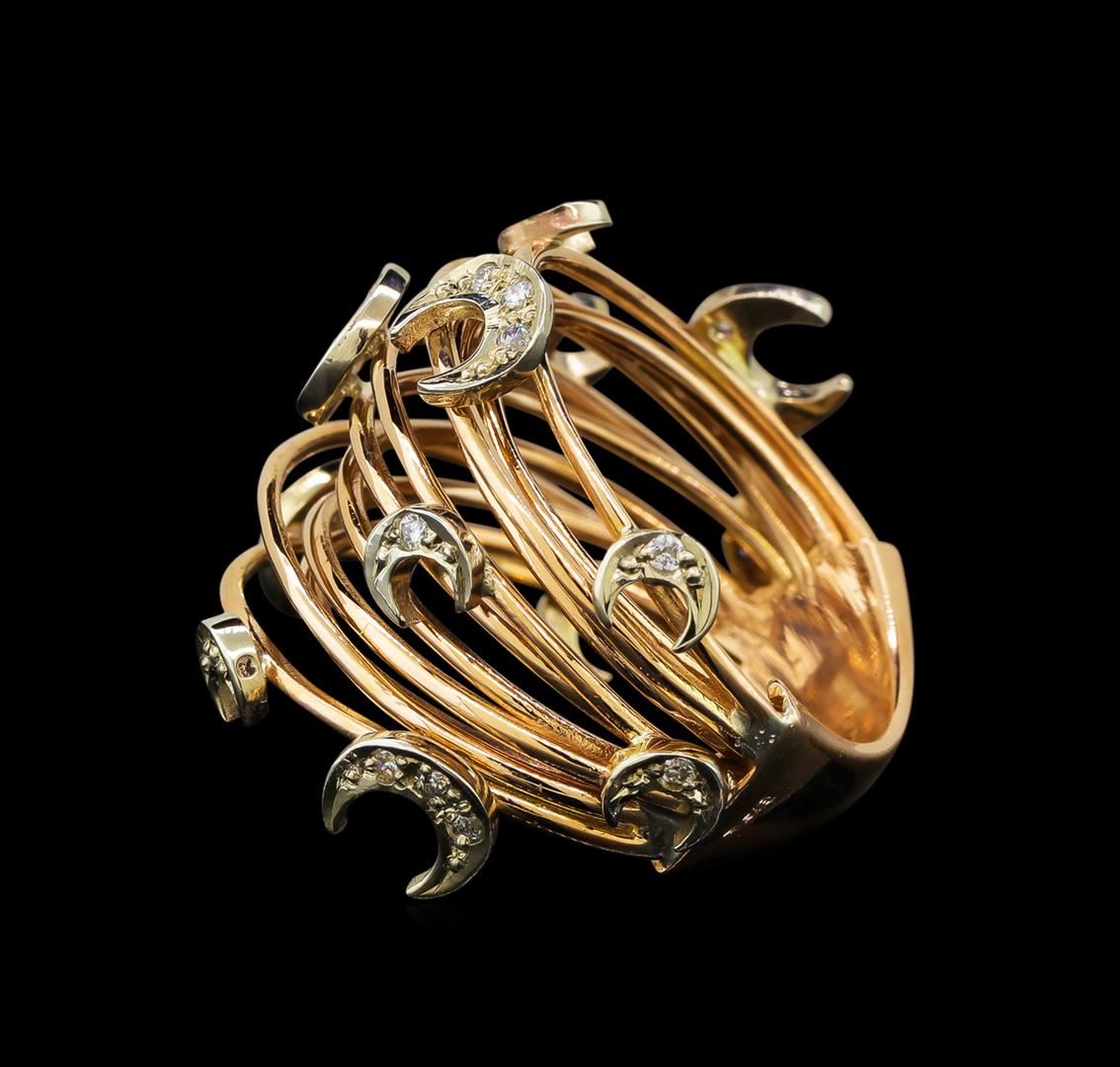 One electronically tested 14KT rose gold ladies cast diamond ring with a bright polish finish. Identified with markings of "14K". Condition is new. Containing: Twenty-Three prong set round brilliant cut diamonds, measuring 1.00 - 1.00 x 0.60mm (depth est.) approximate total weight of 23 Stones = 0.15ct. Clarity: SI-1 to I-1. Color: I - J, Cut is Good. All diamonds are graded in the mounting, unless otherwise stated. Total Weight of Diamonds 0.15ct. Total Weight of Ring 6.50 grams. GGL Appraised at $1,720.00.