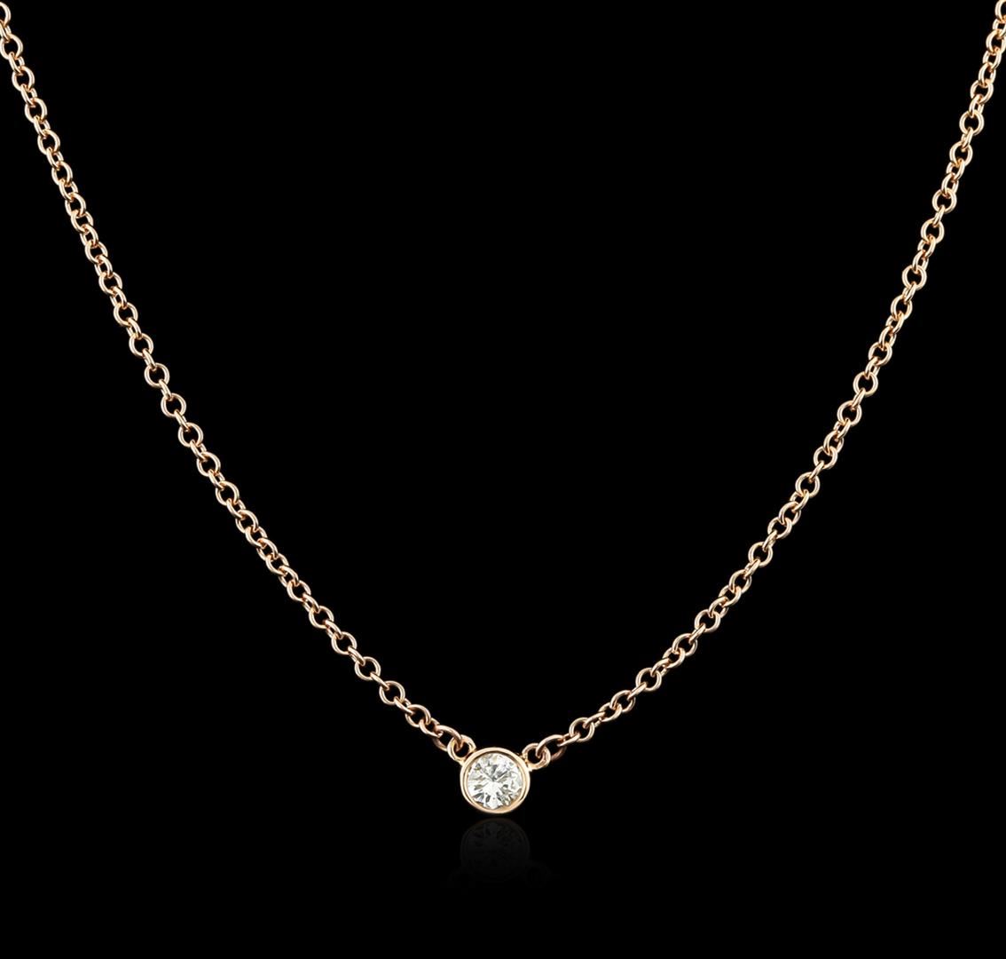 One solitaire necklace featuring: 14KT rose gold weighing 2.40 grams containing one diamond with a total weight of 0.15ct.