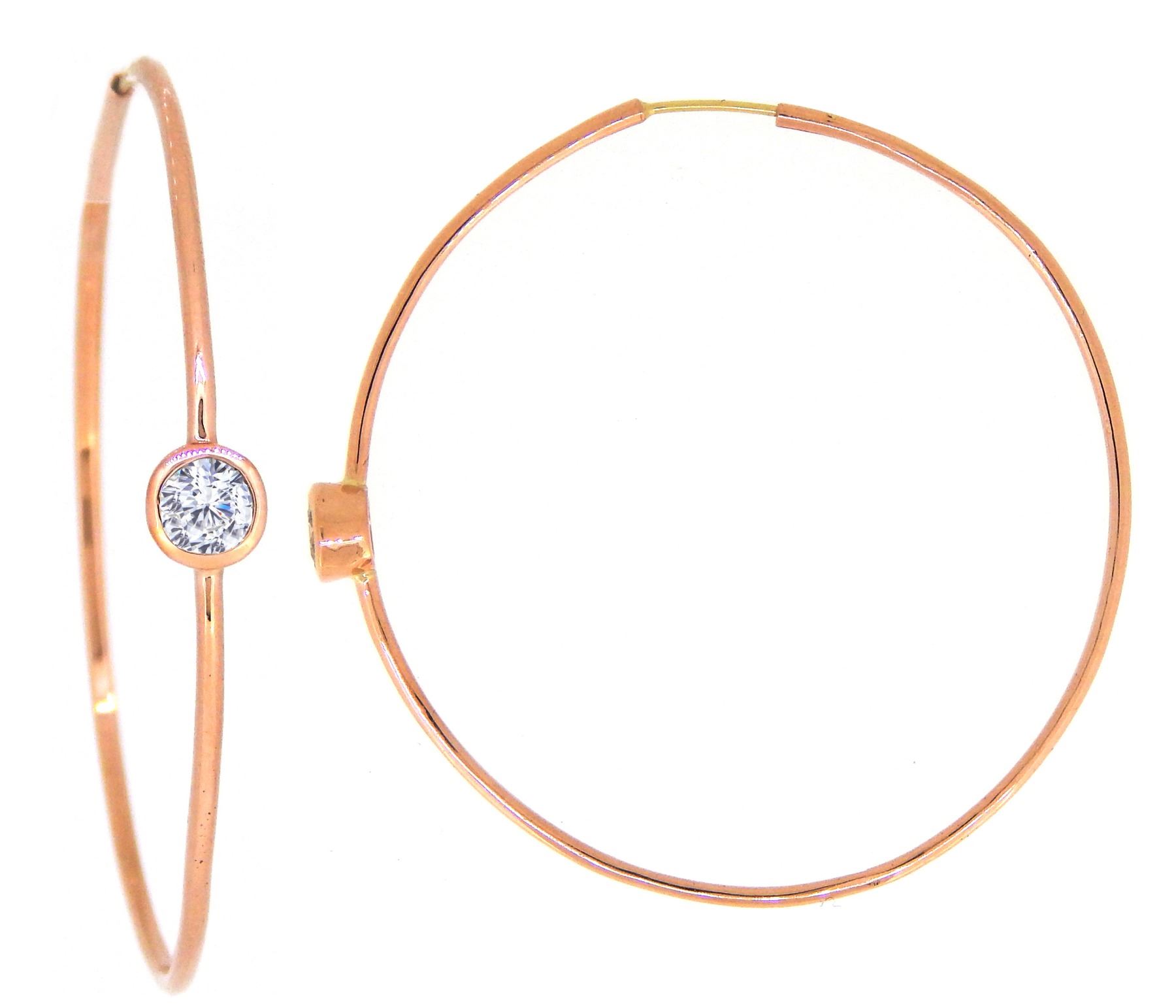 One 14KT Rose Gold 0.42ctw Diamond Hoop Earrings. (2) Round Diamonds with a total weight of 0.42cts with a color of I-J and clarity of I-1. Total weight of these earrings are 6 grams.