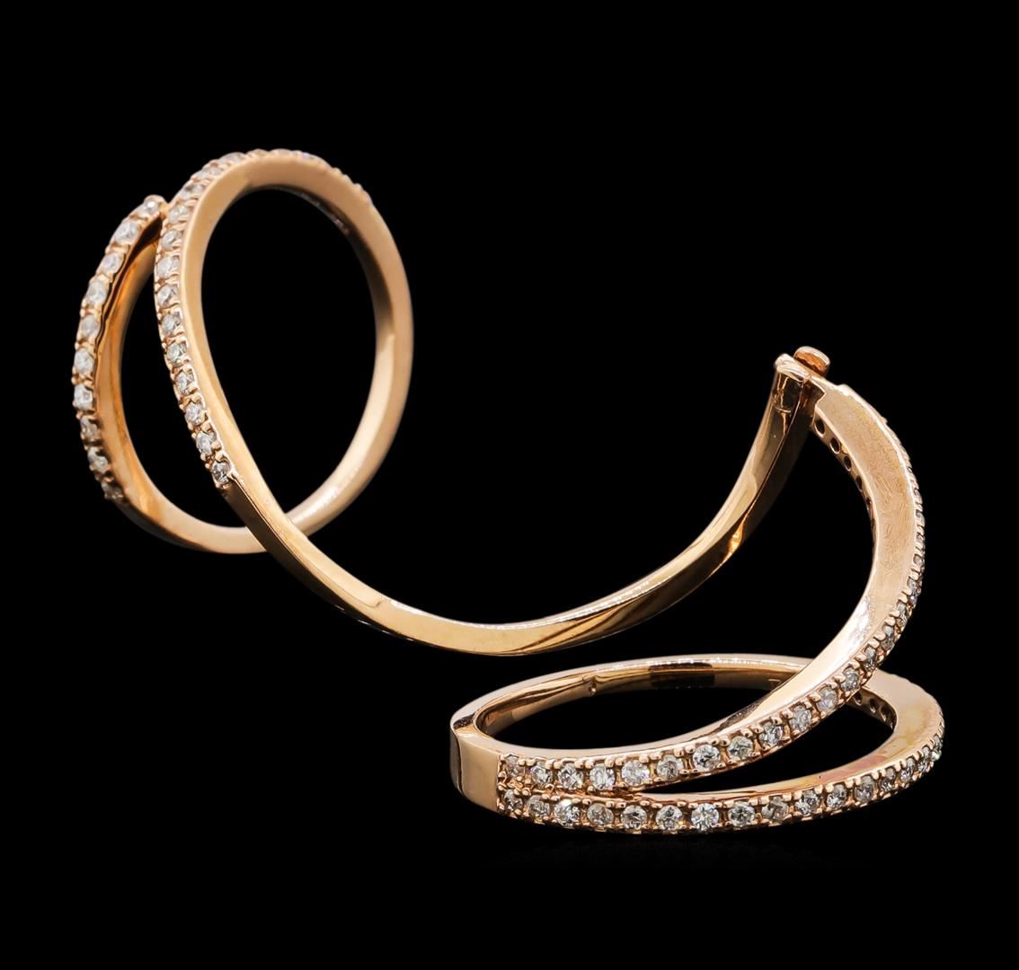 One electronically tested 14KT rose gold ladies cast diamond ring with a bright polish finish. Identified with markings of "K14". Condition is new. Containing: Seventy-Five prong set round brilliant cut diamonds, measuring 1.00 - 1.00 x 0.60mm (depth est.) approximate total weight of 75 Stones = 0.44ct. Clarity: SI-2 to I-2. Color: I - J, Cut is Good. Diamonds are graded in the mounting, unless otherwise stated. Total Weight of Diamonds 0.44ct. Total Weight of Ring 4.60 grams. GGL Appraised at $1,730.00.