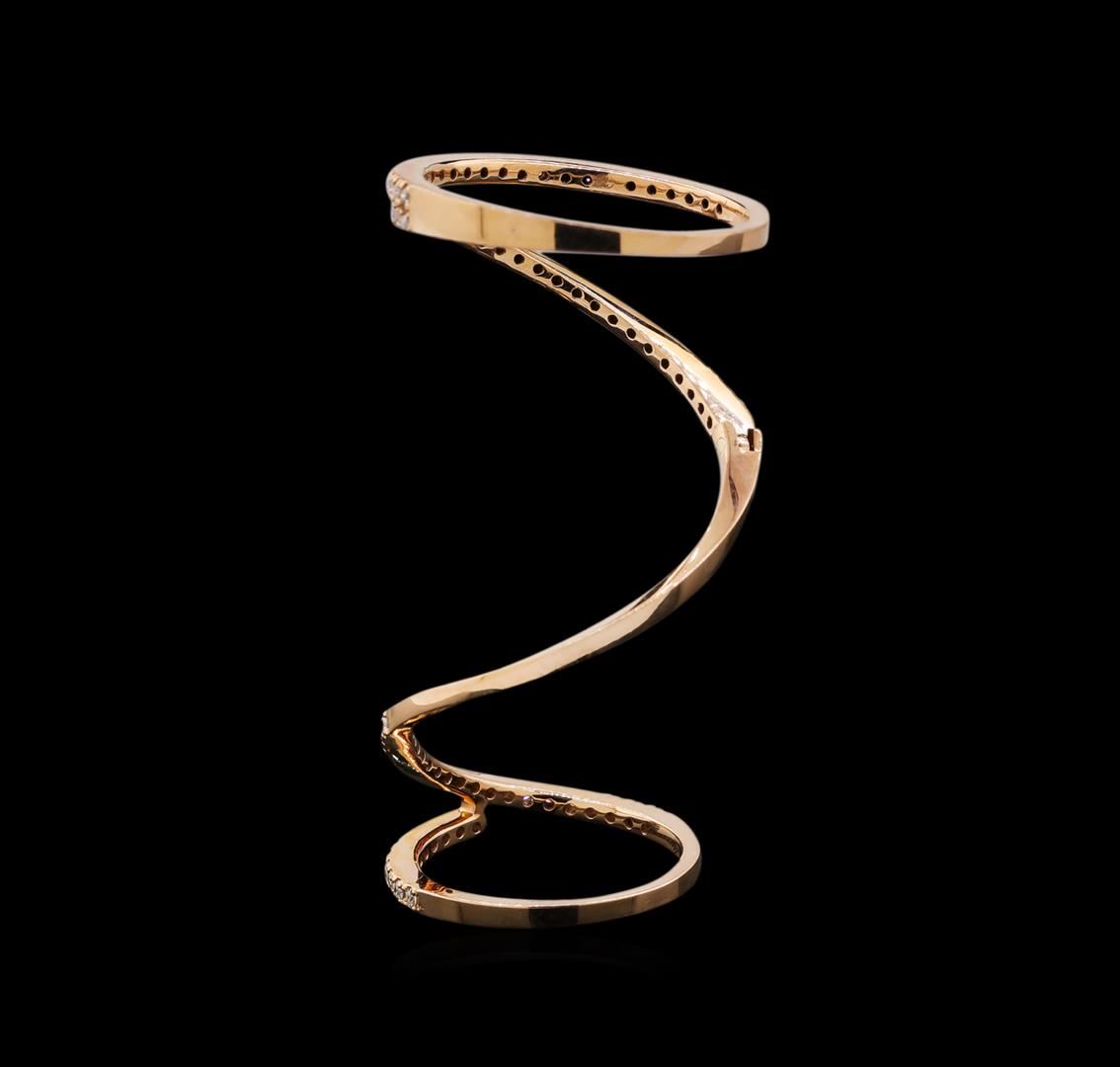 One electronically tested 14KT rose gold ladies cast diamond ring with a bright polish finish. Identified with markings of "K14". Condition is new. Containing: Seventy-Five prong set round brilliant cut diamonds, measuring 1.00 - 1.00 x 0.60mm (depth est.) approximate total weight of 75 Stones = 0.44ct. Clarity: SI-2 to I-2. Color: I - J, Cut is Good. Diamonds are graded in the mounting, unless otherwise stated. Total Weight of Diamonds 0.44ct. Total Weight of Ring 4.60 grams. GGL Appraised at $1,730.00.