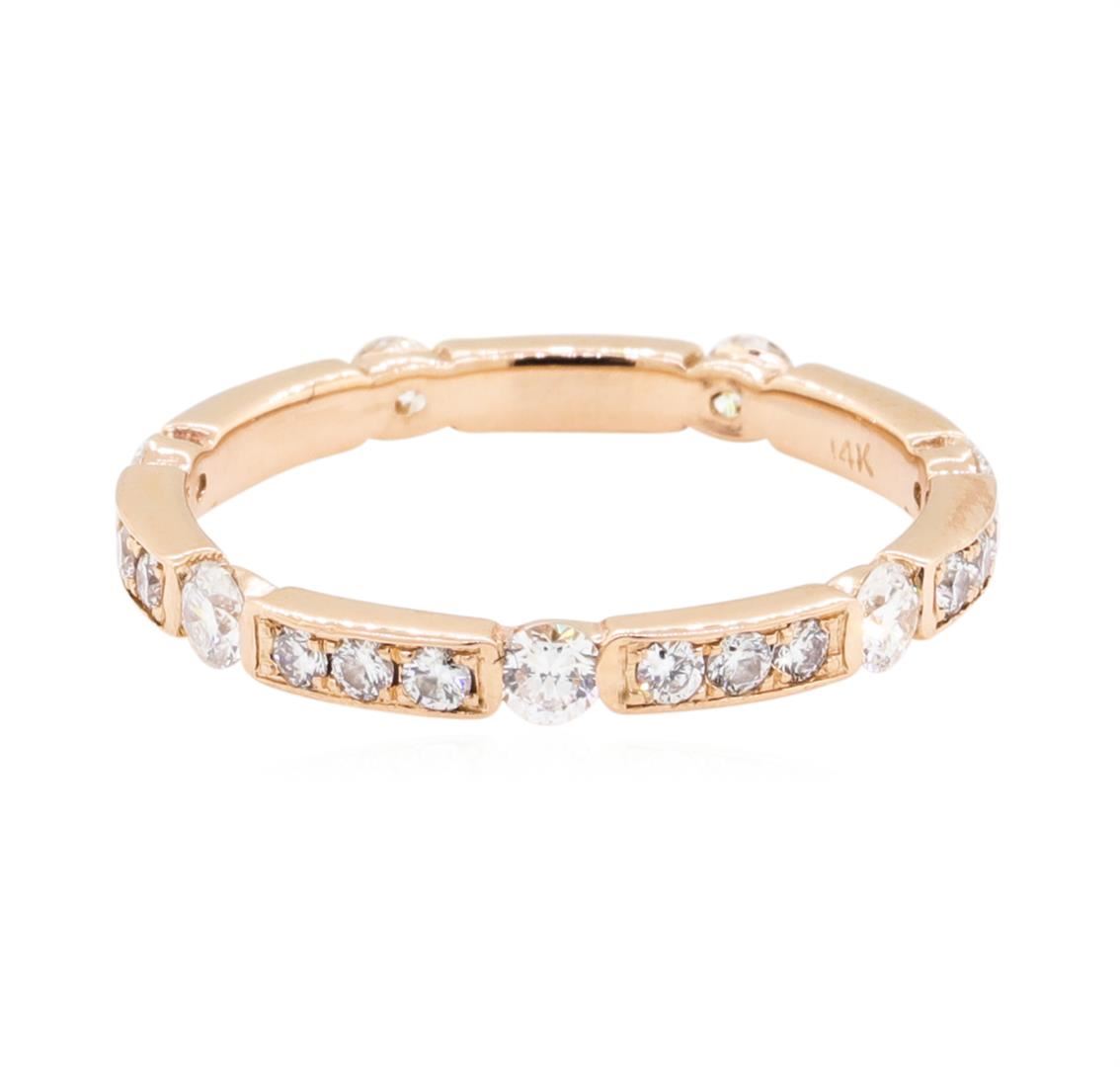 One ring featuring: 14KT rose gold weighing 1.8 grams containing diamonds weighing 0.65ctw. The ring is a size 5.75.