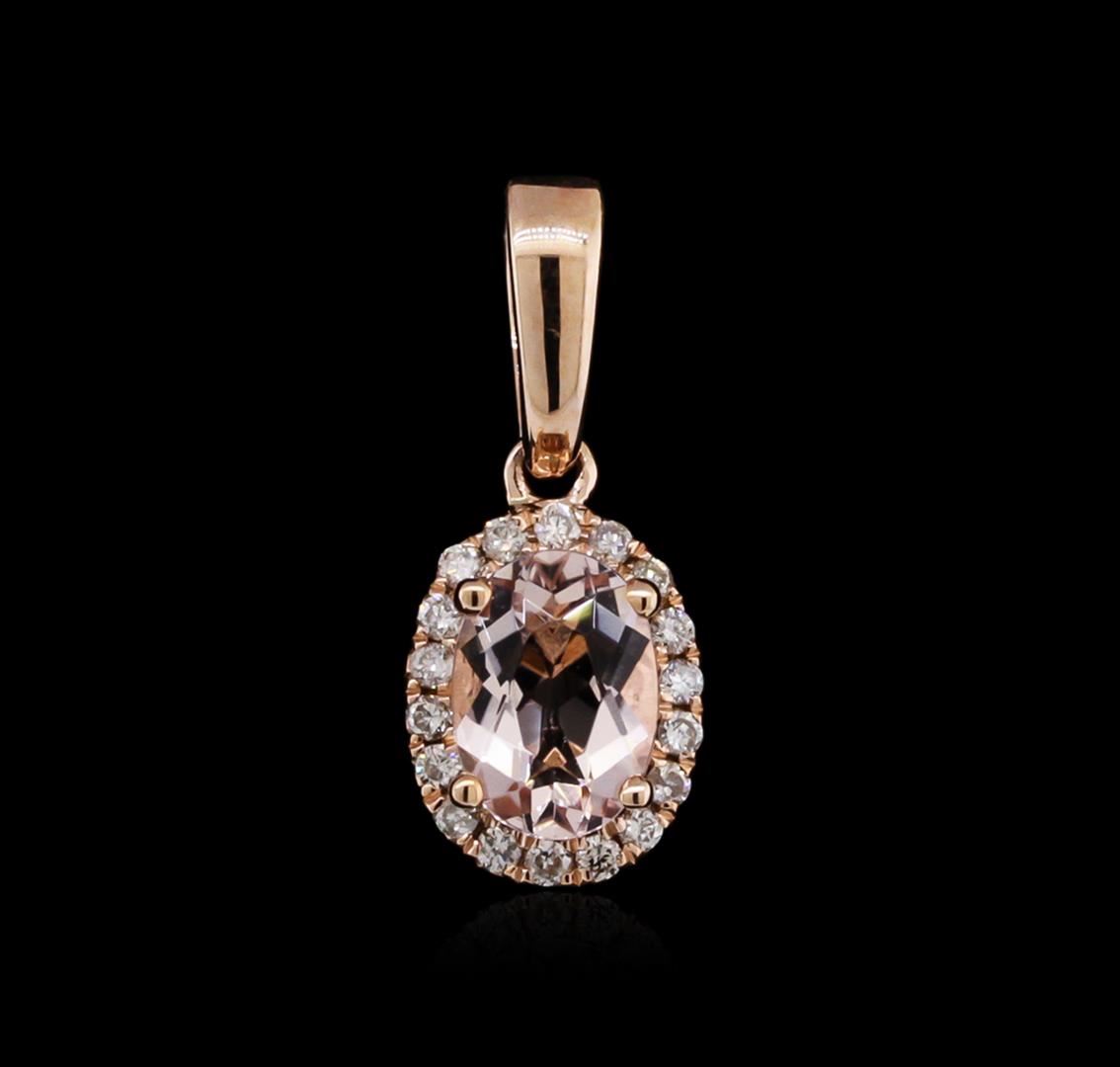 One pendant featuring: 14KT rose gold weighing 1.30 grams containing one morganite with a total weight of 0.69ct and 18 round diamonds with a total weight of 0.11ct.