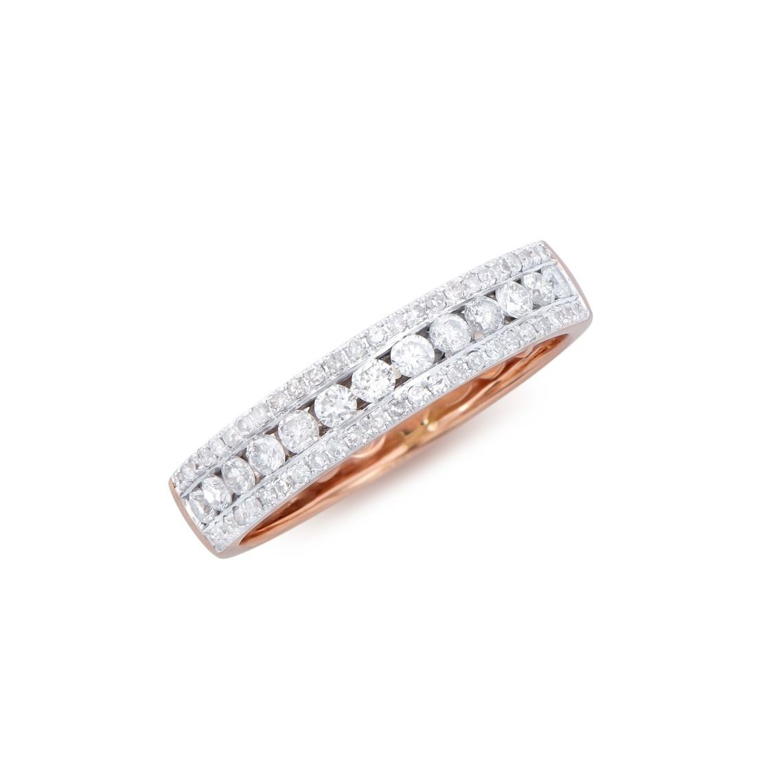 (13) Round Diamonds with a total weight of 0.45cts with a color of H-I and clarity of I1-I2. (50) Round Diamonds with a total weight of 0.25cts with a color of H-I and clarity of I1-I2.Total weight of this ring is 3.60 grams. Ring size is 7.5.