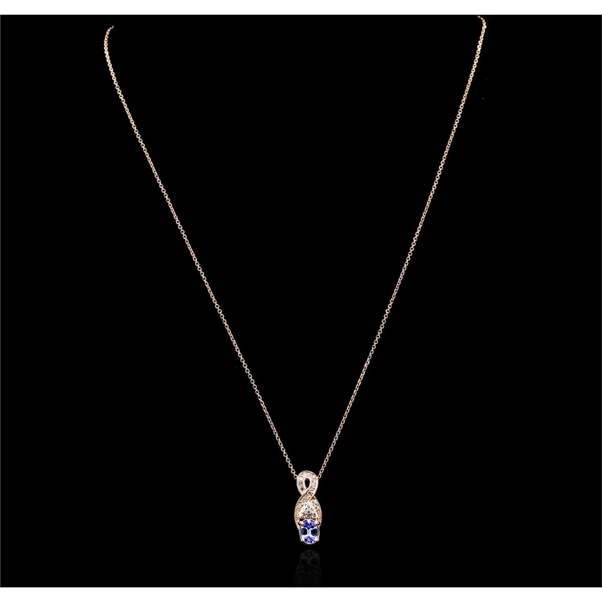 One pendant with chain featuring: 14KT rose gold weighing 3.66 grams containing one tanzanite with a total weight of 0.72ct and round diamonds with a total weight of 0.21cts.