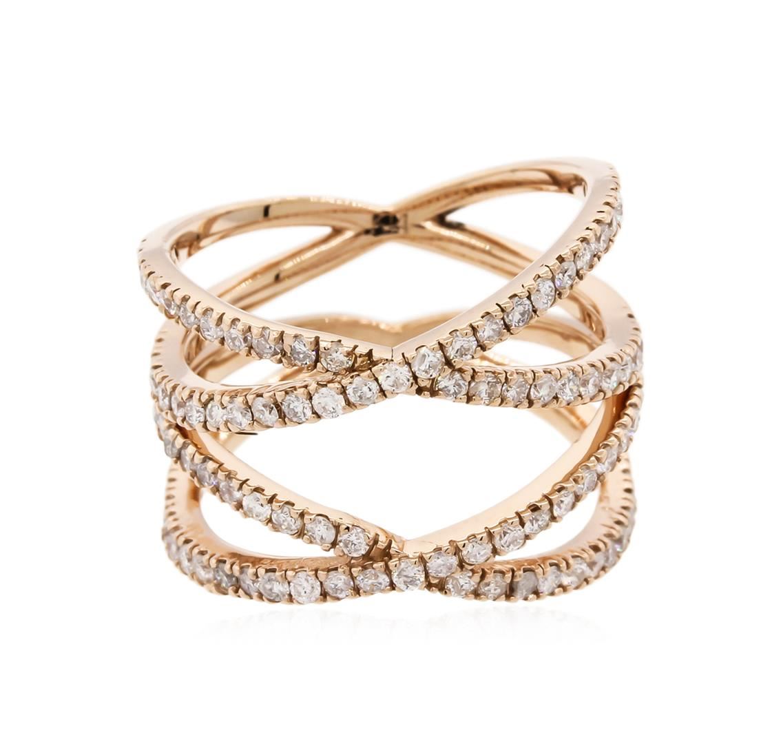 One ring featuring: 14KT rose gold weighing 5.50 grams containing 94 diamonds with a total weight of 0.97ct.