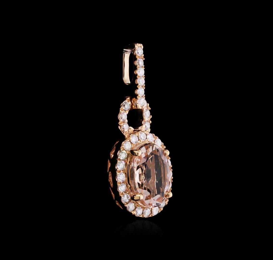 One pendant featuring: 14KT rose gold weighing 1.67 grams containing one morganite with a total weight of 1.03ct and 32 round diamonds with a total weight of 0.20ct.