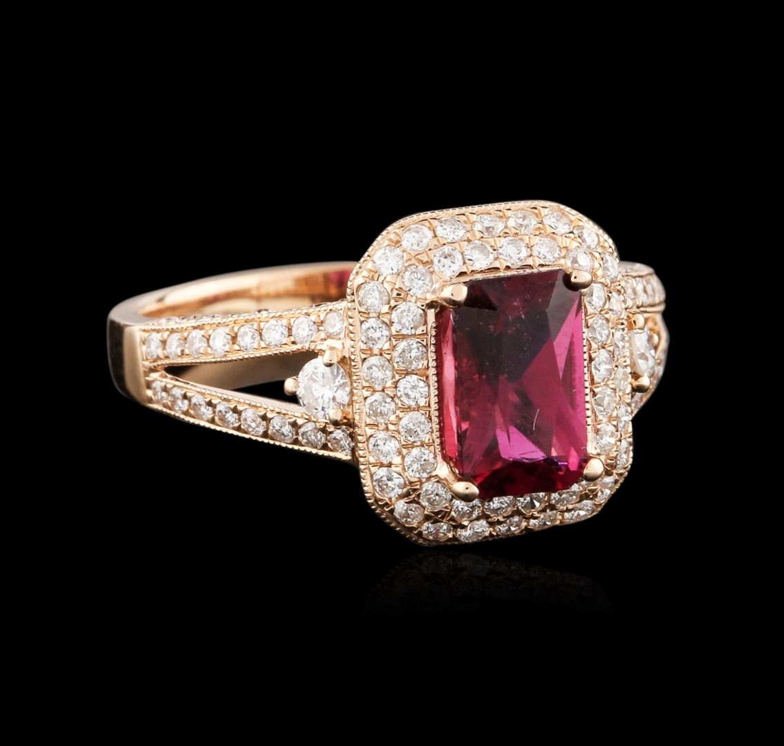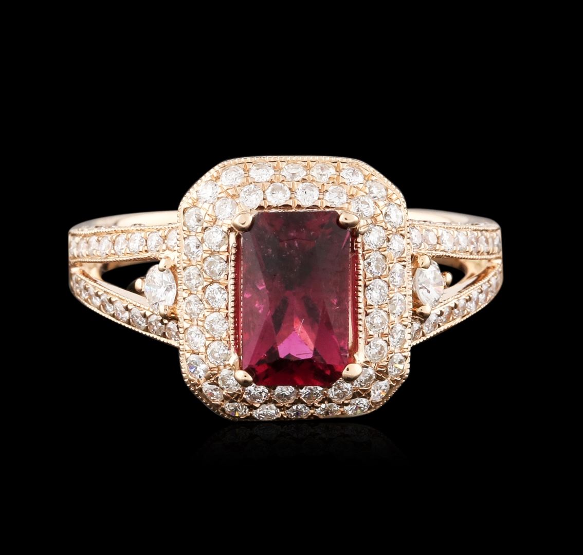 One ring featuring: 14KT rose gold weighing 4.00 grams containing one tourmaline center stone with a total weight of 1.07ct and diamonds with a total weight of 0.82ct.