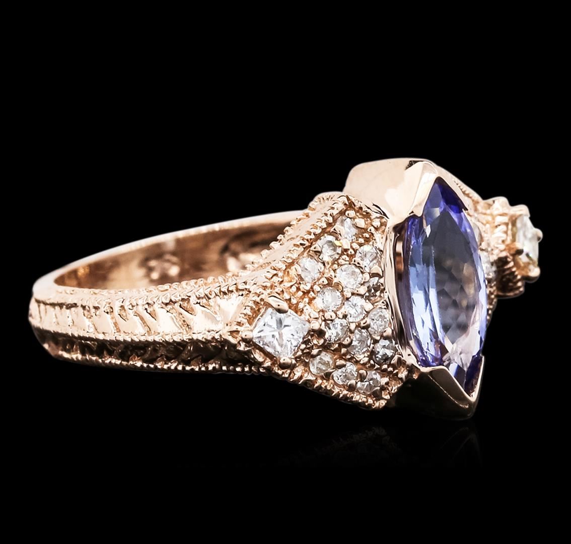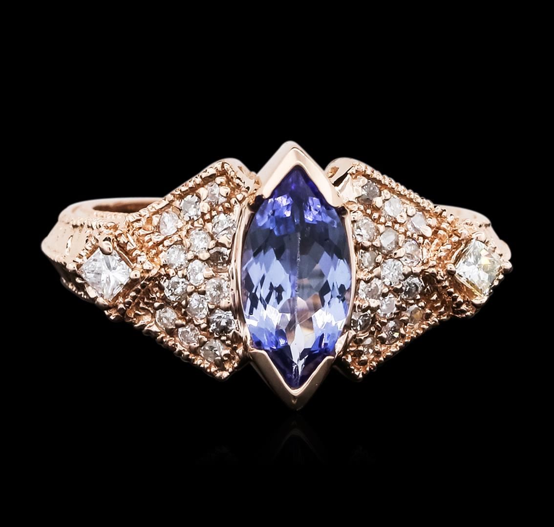 One ring featuring: 14KT rose gold weighing 5.74 grams containing one tanzanite center stone with a total weight of 1.10ct and round diamonds with a total weight of 0.35cts.