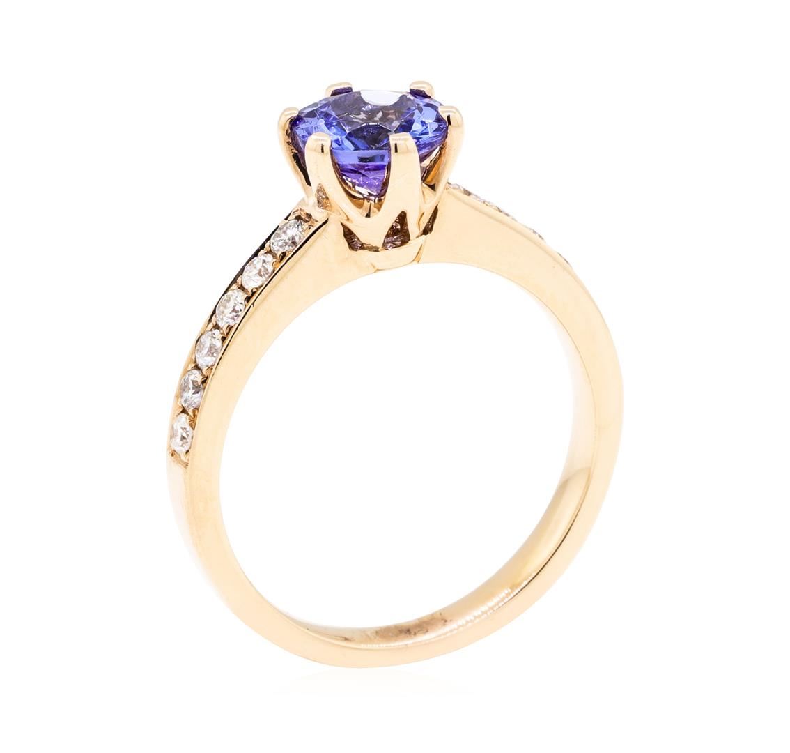 One ring featuring: 14KT rose gold weighing 4.0 grams containing one round tanzanite weighing 1.18ct and diamonds weighing 0.28ctw. The ring is a size 6.5.