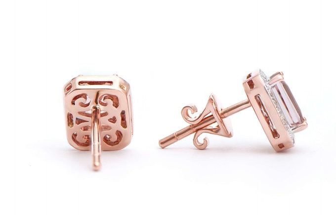 Morganite Color: Peach-Pink Shape: Octagon Size: 6x4 Quantity: 2 CTW: 1.31 Diamond Description Shape: Rounds Size: 0.9 mm Quantity: 48 CTW: 0.22 Grade: I1-I2 Color: H-I. Total Weight: 2.85 grams.