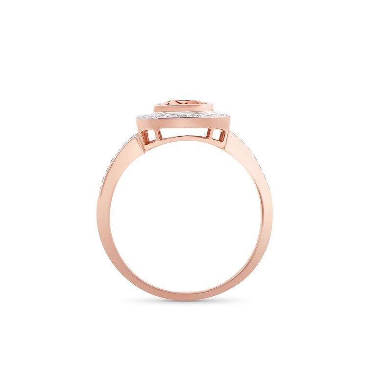 Morganite Color: Peach-Pink Shape: Octagon Size: 8x6 Quantity: 1 CTW: 1.45 Diamond Description Shape: Rounds Size: 1.2-1.3mm Quantity: 24 CTW: 0.22 Grade: I1-I2 Color: H-I. Total Weight: 2.85 grams Ring Size: 7.5.