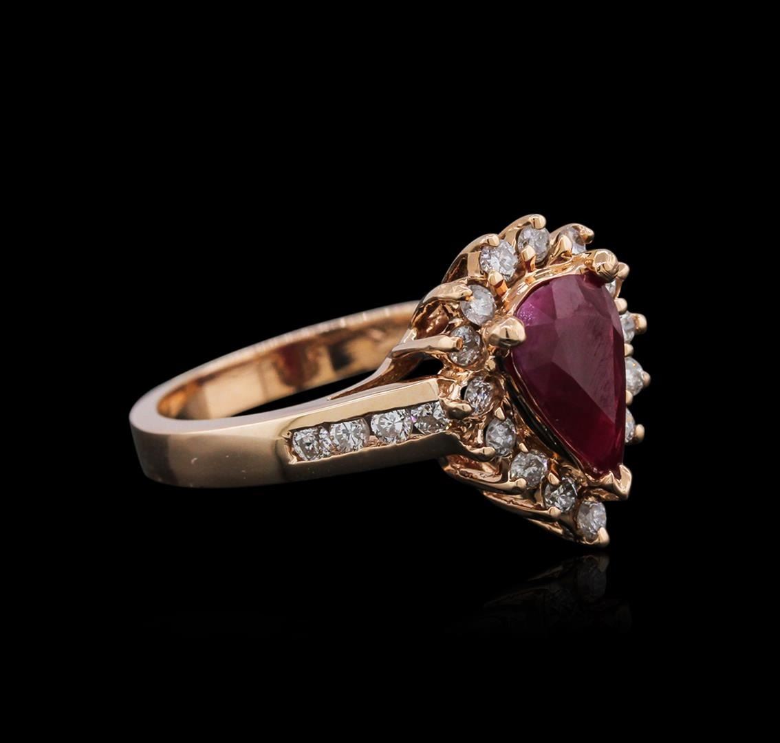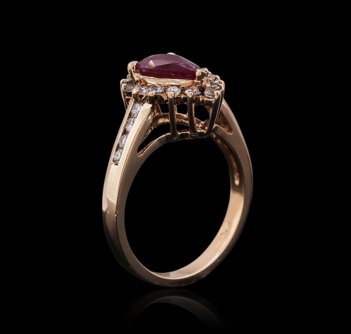 One ring featuring: 14KT rose gold weighing 5.78 grams containing one ruby center stone with a total weight of 1.42ct and 24 diamonds with a total weight of 0.55ct.