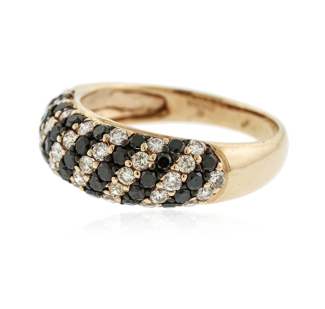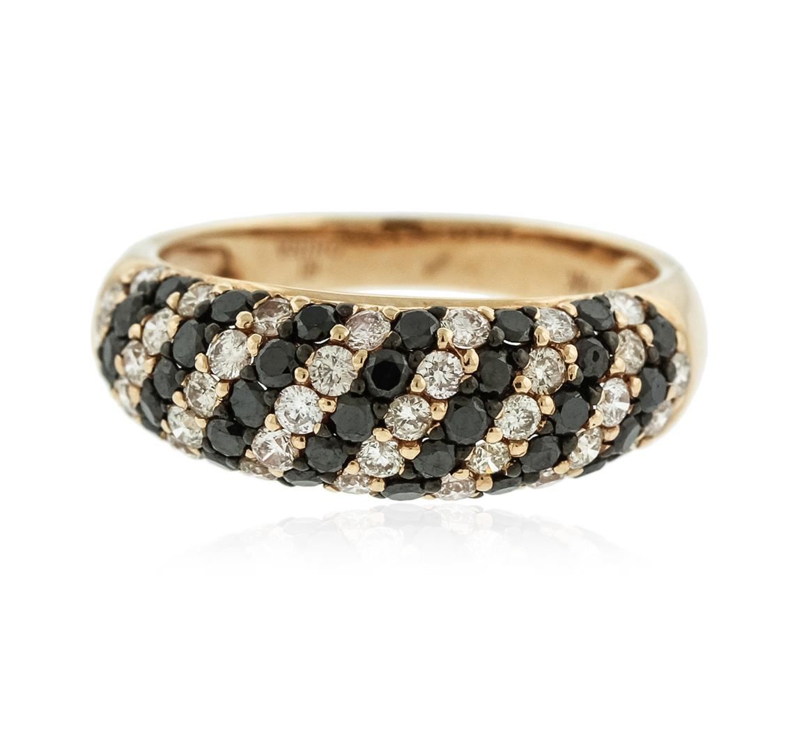 One ring featuring: 14KT rose gold weighing 4.90 grams containing 33 black diamonds with a total weight of 0.72ct and 36 round diamonds with a total weight of 0.74ct.