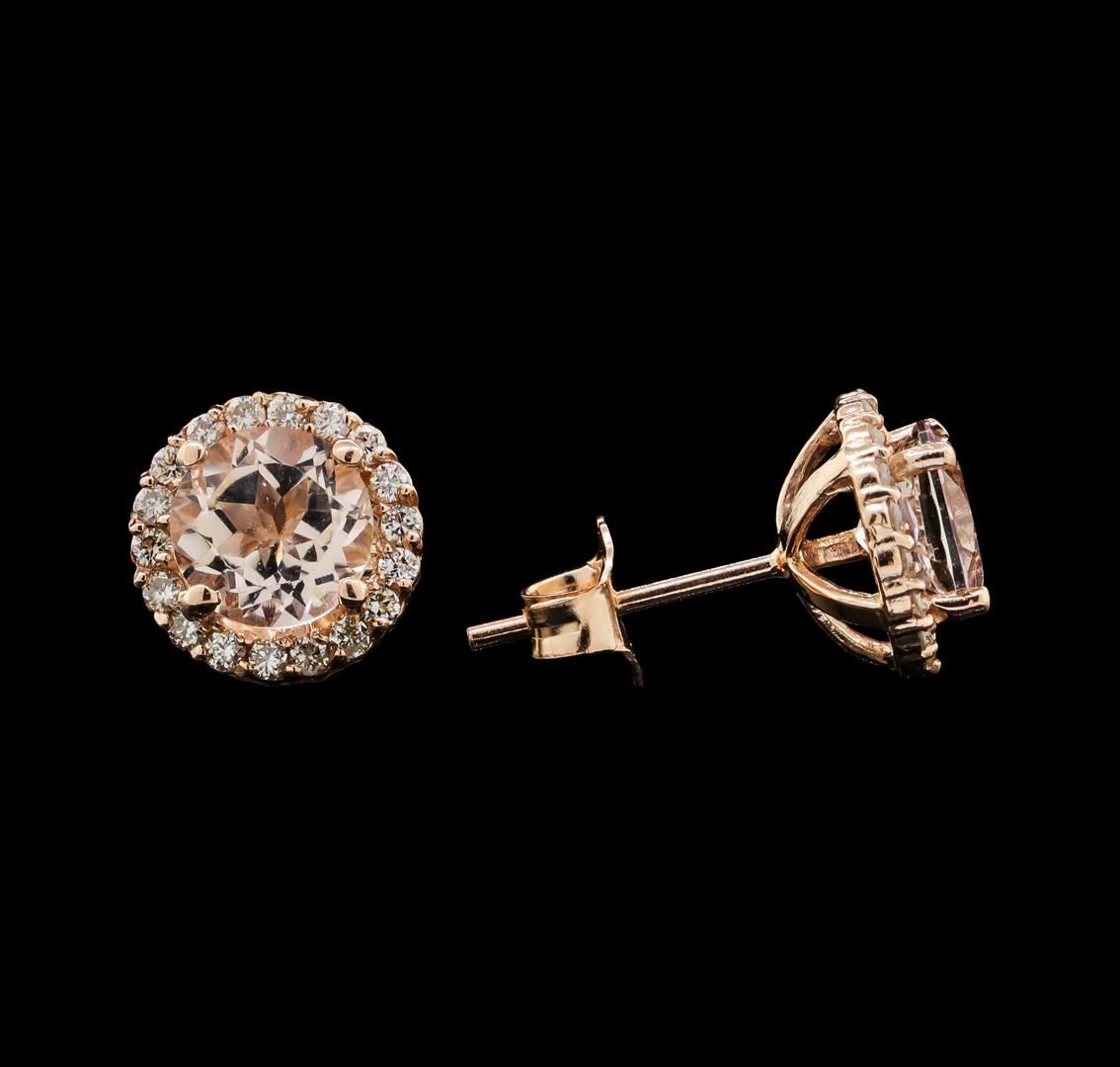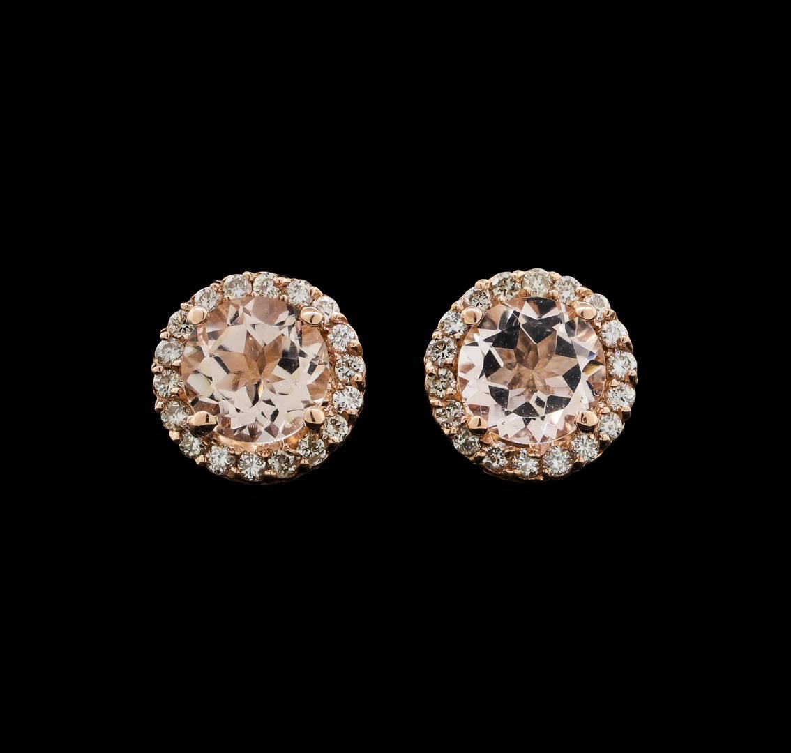 One pair of lady's earrings featuring: 14KT rose gold weighing 1.8 grams containing two morganites weighing 1.54ctw and diamonds weighing 0.29ctw.