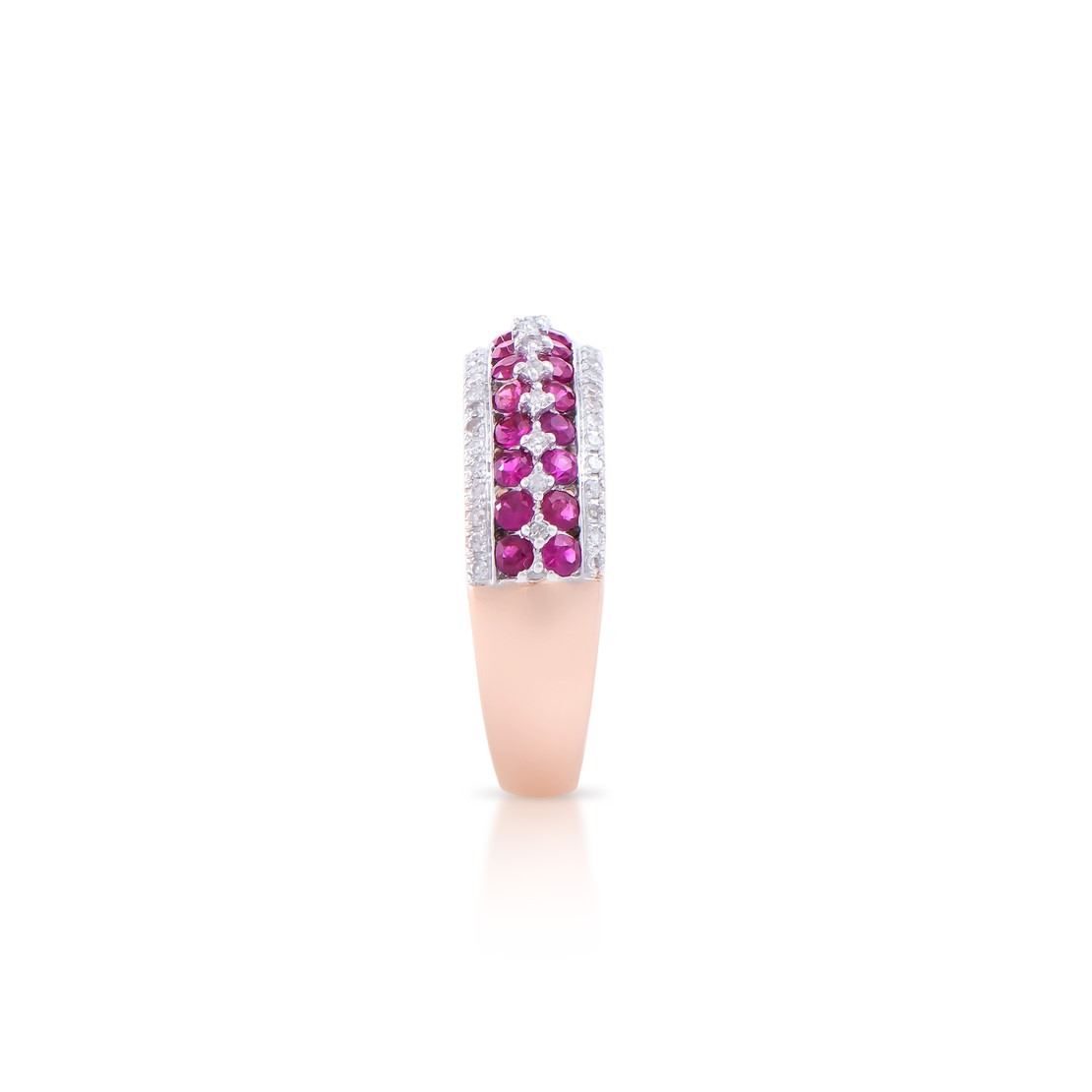 (32) Rubies with a total weight of 1.25cts. (69) Round Diamonds with a total weight of 0.31cts with a color of H-I and a clarity of I2-I3. Total weight of this ring is 5.50 grams. Ring size is 7.5.