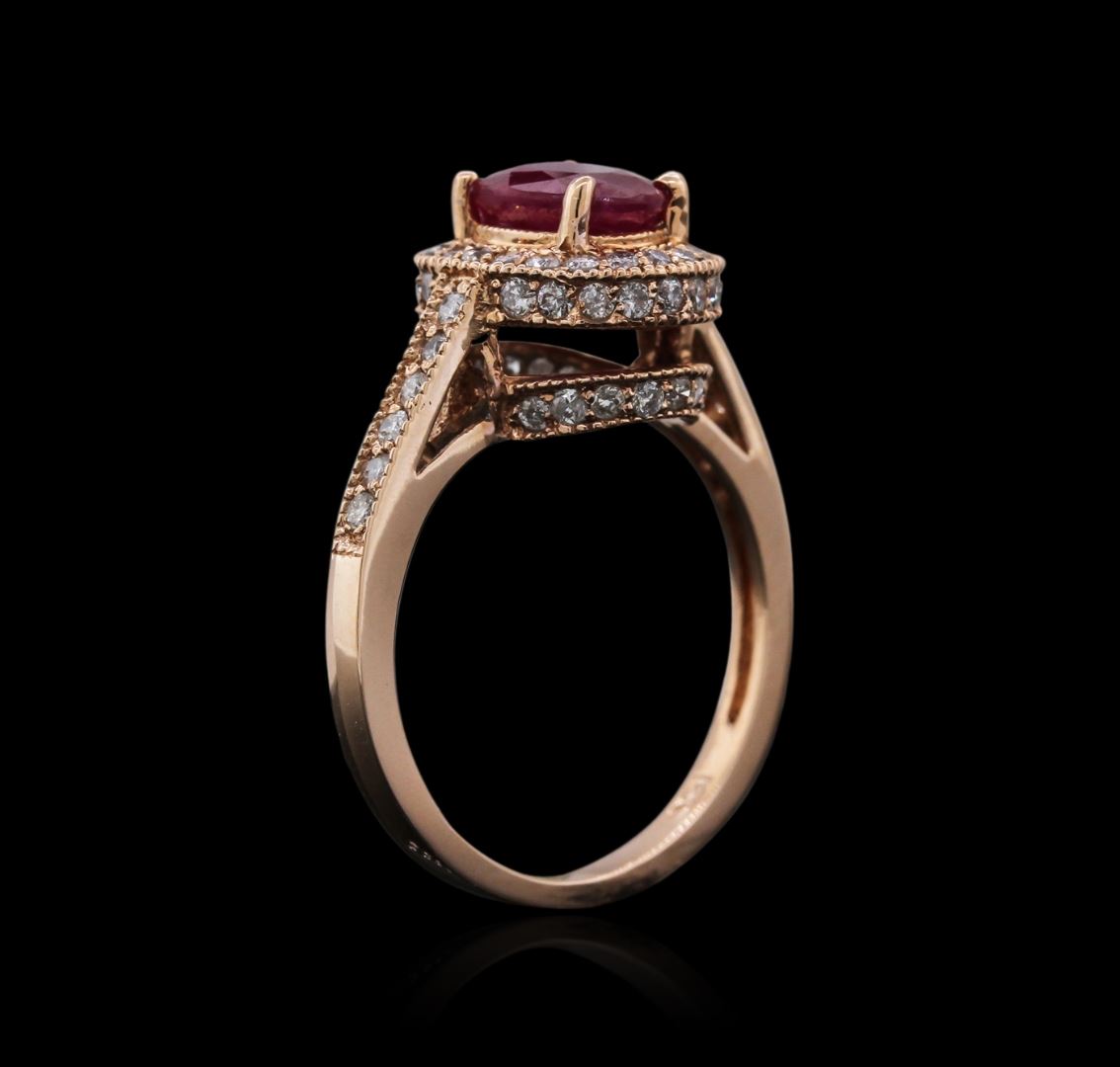 One ring featuring: 14KT rose gold weighing 4.30 grams containing one ruby center stone with a total weight of 1.74ct and 66 diamonds with a total weight of 0.69ct.