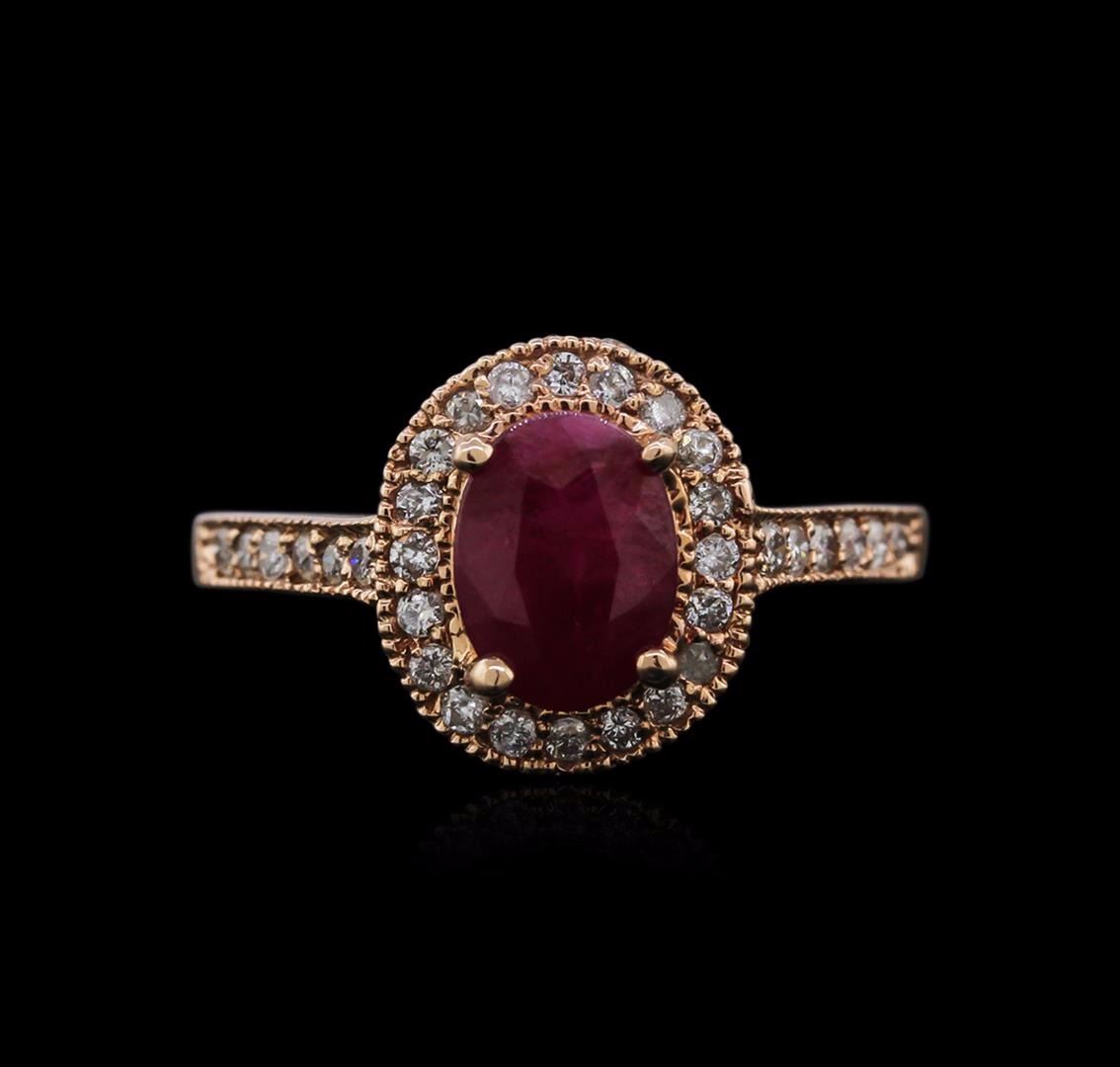 One ring featuring: 14KT rose gold weighing 4.30 grams containing one ruby center stone with a total weight of 1.74ct and 66 diamonds with a total weight of 0.69ct.