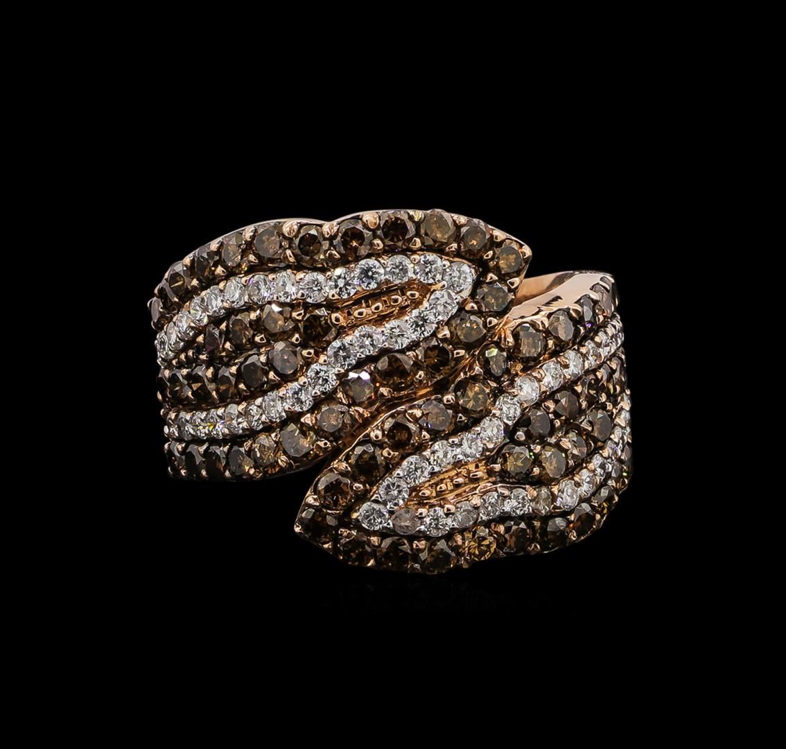 One electronically tested 14KT rose gold ladies cast diamond ring with a bright polish finish. Identified with markings of "14K". Condition is new. Containing: Fifty-Eight prong set round brilliant cut diamonds, measuring 1.31 - 1.30 x 0.79mm (depth est.) approximate total weight of 58 Stones = 0.48ct. Clarity: SI-2 to I-1. Color: I - J. Sixty-Four prong set round brilliant cut diamonds, measuring 1.80 - 1.80 x 1.08mm (depth est.) approximate total weight of 64 Stones = 1.36ct. Clarity: SI-2 to I-1. All diamonds are graded in the mounting, unless otherwise stated. Total Weight of Diamonds 1.84ct. Total Weight of Ring 7.40 grams. GGL Appraised at $4,770.00.