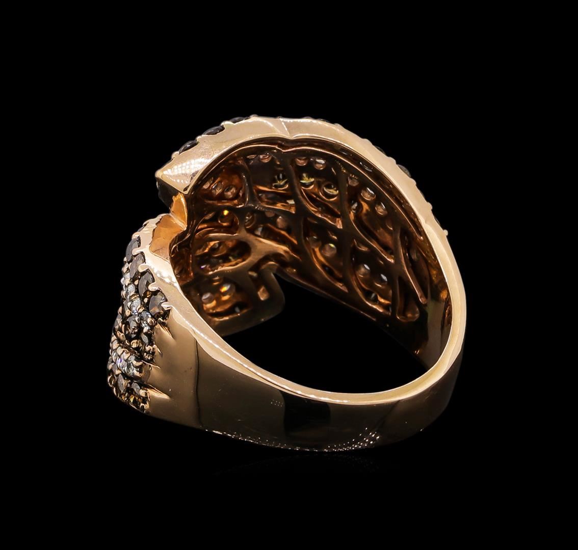 One electronically tested 14KT rose gold ladies cast diamond ring with a bright polish finish. Identified with markings of "14K". Condition is new. Containing: Fifty-Eight prong set round brilliant cut diamonds, measuring 1.31 - 1.30 x 0.79mm (depth est.) approximate total weight of 58 Stones = 0.48ct. Clarity: SI-2 to I-1. Color: I - J. Sixty-Four prong set round brilliant cut diamonds, measuring 1.80 - 1.80 x 1.08mm (depth est.) approximate total weight of 64 Stones = 1.36ct. Clarity: SI-2 to I-1. All diamonds are graded in the mounting, unless otherwise stated. Total Weight of Diamonds 1.84ct. Total Weight of Ring 7.40 grams. GGL Appraised at $4,770.00.